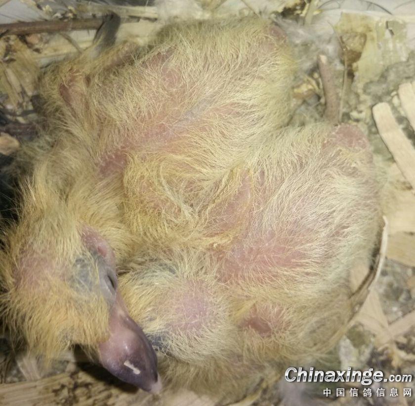 雌白与灰雄做出,但最外这个出是帮别的种鸽的孵的,现在已经死了。