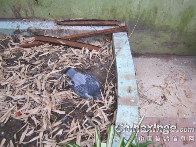 这就是儿子用盆子盖着的那只,颈部被鹞子掏了几个洞。据儿子描述:当时正在楼下写作业,听见楼顶棚内鸽子霹雳巴拉乱响,赶紧上楼,棚内只有一直鸽子,一动不动,棚外一只鹞子正在吃这只鸽子,于是拍巴掌把鹞子赶走,没想到,鹞子转身落在棚顶,再吆喝,鹞子歇在棚后树林,于是儿子用澡盆把死了的鸽子给盖住。看见一大群鸽在很高的空中飞。