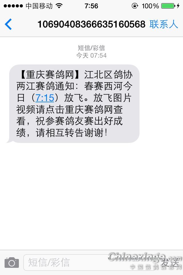 重庆江北区鸽协两江赛鸽俱乐部春赛西河今日(7:15)开笼放飞