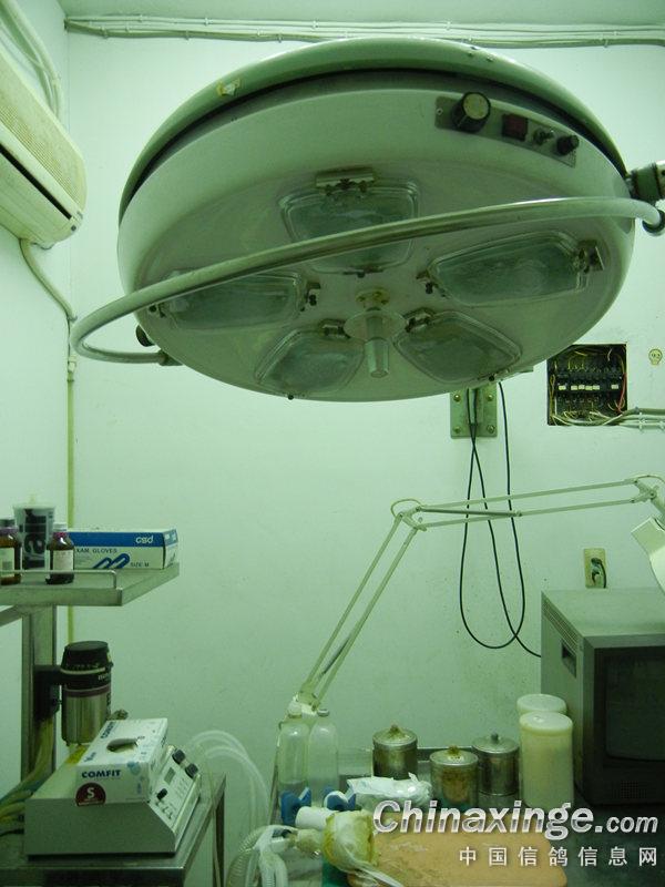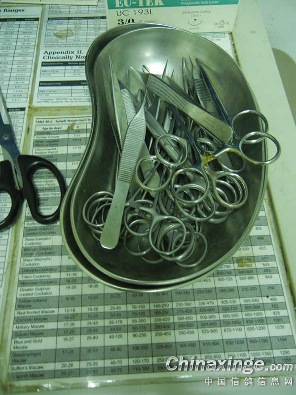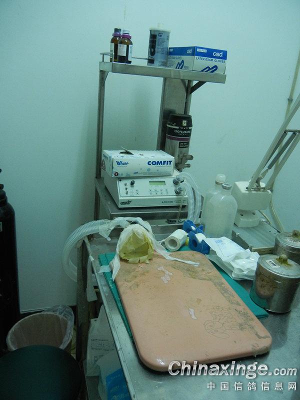那个台子是胶布要经常粘来粘去,桌子垫板下的纸张有点发旧,诊所每天要消毒的,卫生检查相当严格,器械闪闪发光呢。鸽友眼睛相当厉害啊!! |