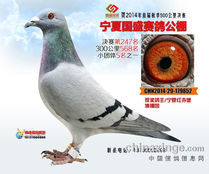 与本地鸽友联合选送,合并团体,2012年获宁夏赛鸽公棚80。