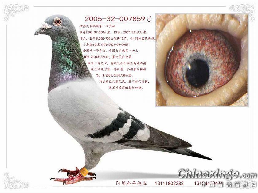 本身2006-3日500Km,13名;2007-5月放甘肃。19名,共子代300-700Km进17名,号1羽种富优秀鸽。