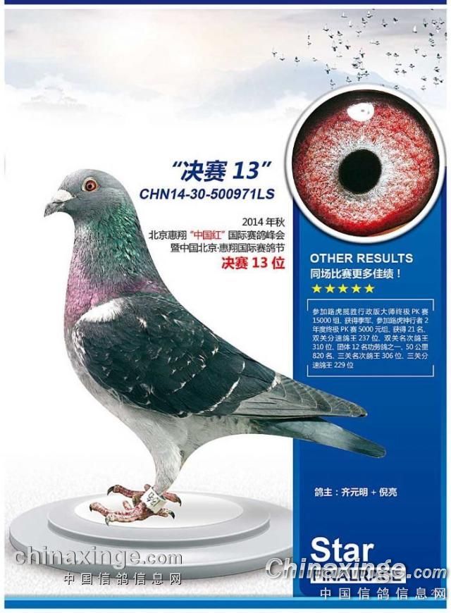 作品说明: 2014年秋 北京惠翔“中国红”国际赛鸽峰会暨中国北京-惠翔国际赛鸽节 决赛13位