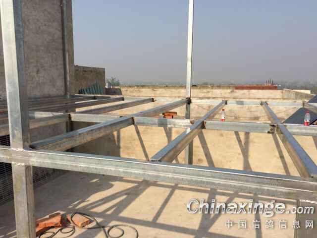 把两头的立柱之间各加两根斜撑吧,毕竟在上面风大,安全第一啊。 |