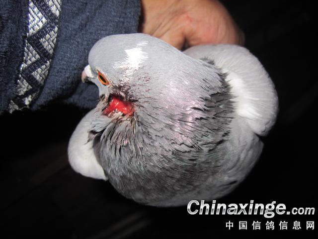 作品说明: 给鸽儿晚餐,一进棚就看见棚内歇架上站着一只萎靡不振的鸽,仔细一看,脖子上羽毛扎起,有一个洞,上手一看,原来是过路的鸽,这才想起中午给鸽子家飞后没关放飞门。赶紧抓出来,放在小笼内给了点玉米,只见狼吞虎咽的吃了起来。由于晕血,也没敢缝合伤口,还是让它自己恢复。站着一只外来鸽。灰花头、雌、黄眼、佩戴有浅绿色电子环、正规环号为:2015—22-0206109,消瘦、啦绿便,吃了食物后,精神了许多。发此图别无它意,只希望鸽主能看到,并以此了解自己鸽子训赛基本情况。如恢复定将其放飞,不能恢复,将淘汰。顺告鸽主,我地位于山区和四川广元接壤,近几日来,均为阴天,每天均有零星小雨。祝它早日康复!