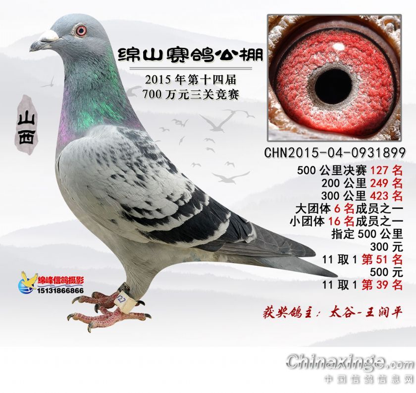 2015年秋山西绵山赛鸽公棚500公里决赛(101-150名)