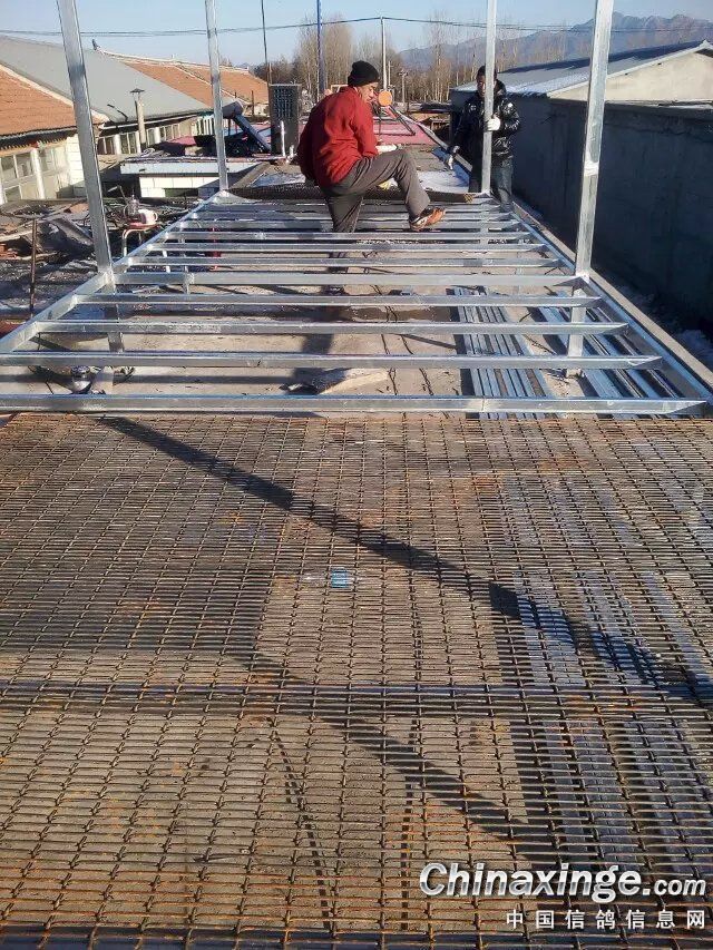 缺点有三,一是上顶应该做出脊顶,跳台在顶下方利于鸽子归巢后进棚,二是在北方养鸽子应该把后墙板到底,另按窗户,利于保暖,三是地网应采用木质的,利于鸽子冬季不至于因踩铁碧子着凉。 |