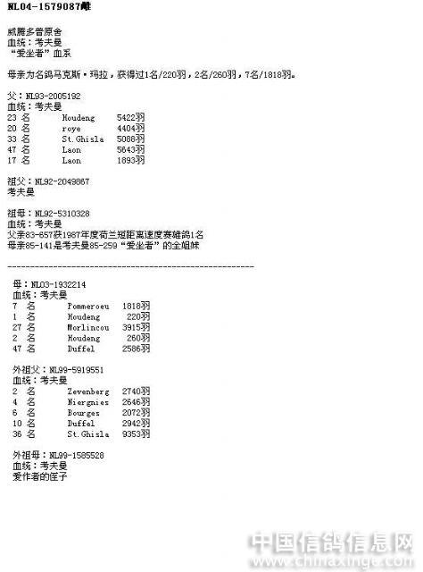 www.chinaxinge.com 中国信鸽信息网