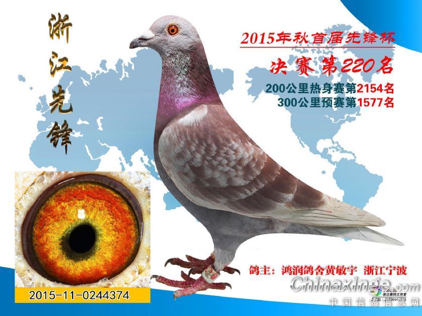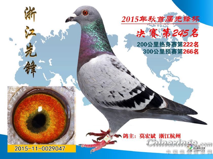 作品说明: 浙江先锋赛鸽中心决赛获奖鸽201名-250名照片欣赏