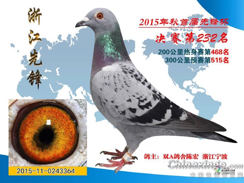 浙江先锋赛鸽中心决赛获奖鸽201名-250名照片欣赏