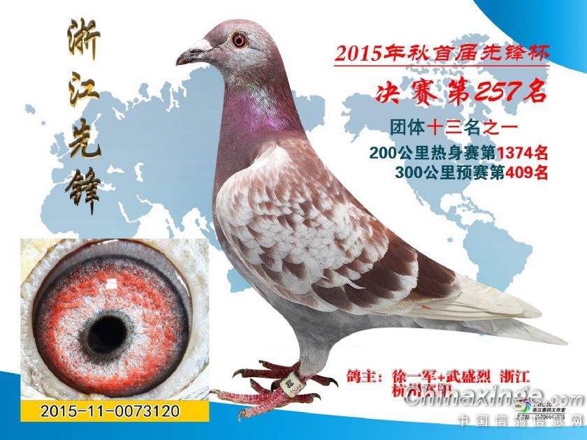 作品说明: 浙江先锋赛鸽中心决赛获奖鸽251名-300名照片欣赏