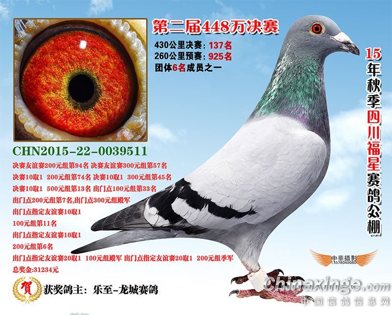 福星公棚决赛获奖鸽126名-150名照片欣赏