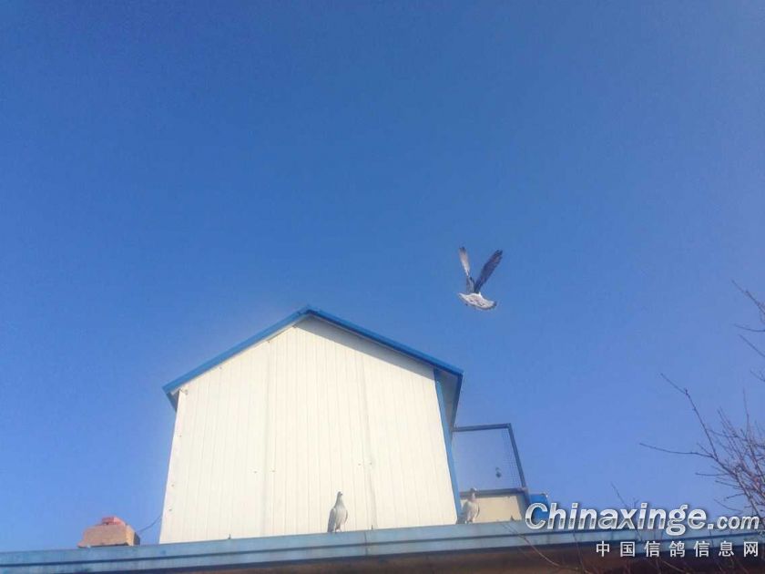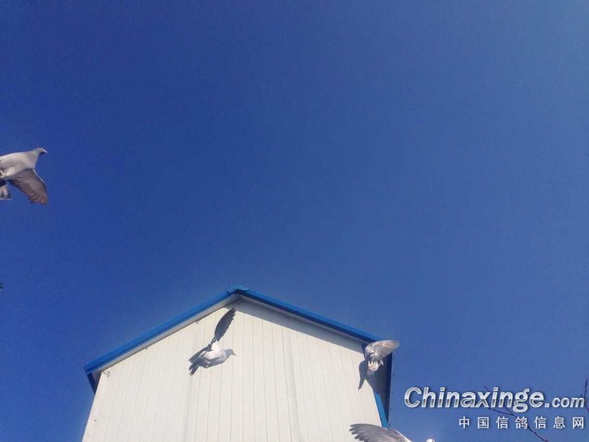 作品说明: 赛鸽在鸽舍前后快乐的飞翔.