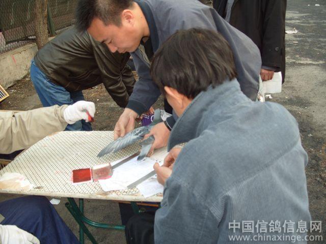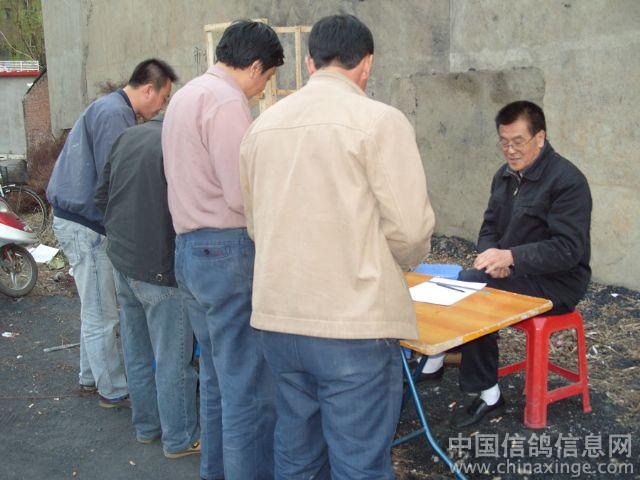 作品说明: 沈阳市信鸽协会360公里竞翔集鸽 沈阳市信鸽协会原定4月25日集鸽进行360公里竞翔,因当天下中到大雨,改到26日集鸽.26日下午16时, 沈阳市的四个信鸽协会: 沈阳市信鸽协会、沈阳市火车头信鸽协会、沈阳市职工信鸽协会、沈阳市信鸽协会铁西分会,一齐进行集鸽,可谓四箭齐发.致使沈阳市信鸽协会集鸽受到阻击,据沈阳市信鸽协会透露,进行360公里竞翔仅集鸽1720余羽.有的鴿友参加二、三甚至四个鸽会的竞翔,往返奔波送鸽.笔者到沈阳市信鸽协会集鸽地点的实间较早,交鸽人很少,很快就把鸽子交完了.
