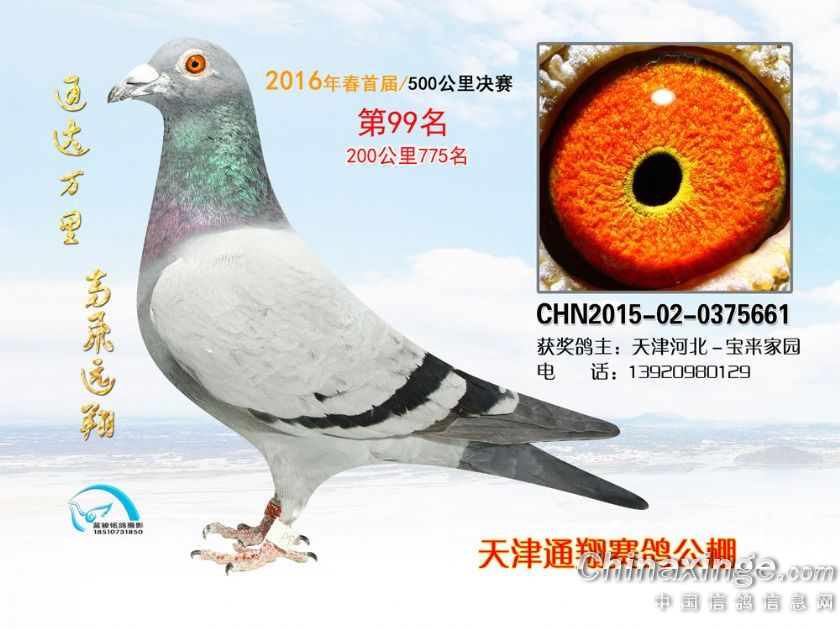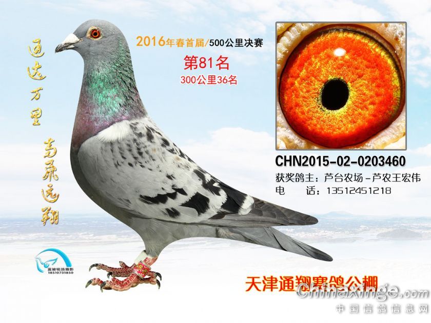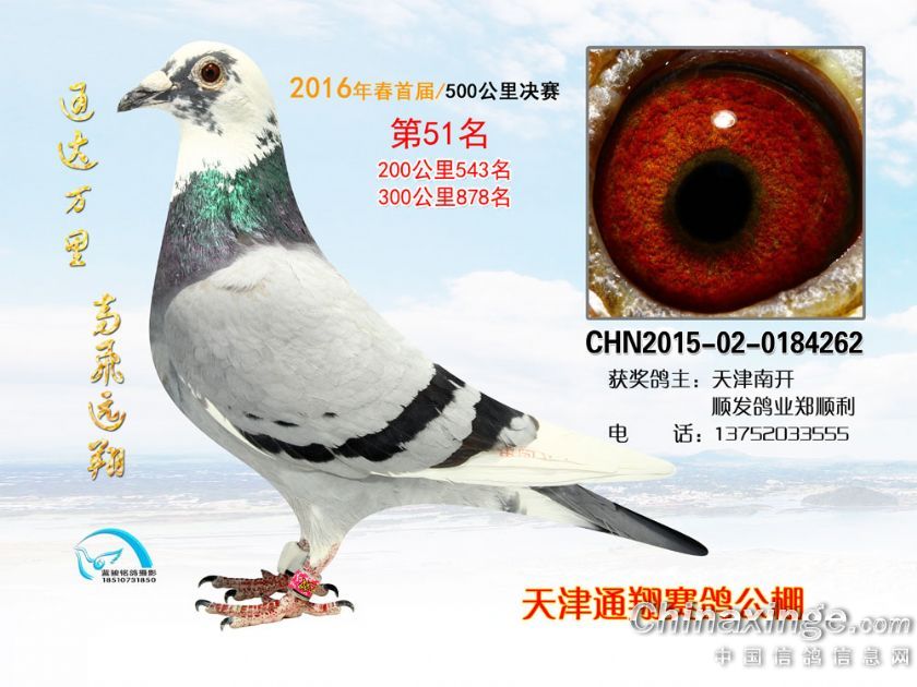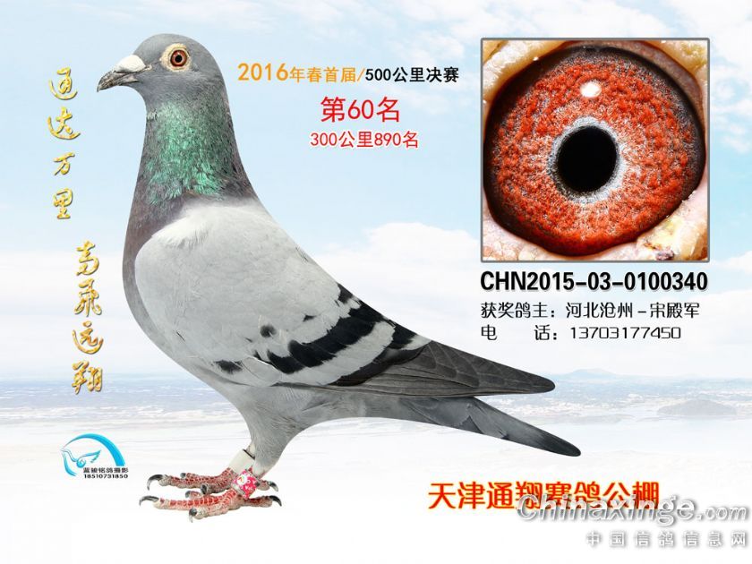 16年春天津通翔公棚首届奖鸽欣赏51-100名