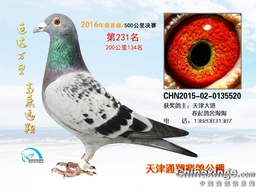 16年春天津通翔公棚首届奖鸽欣赏201-250名