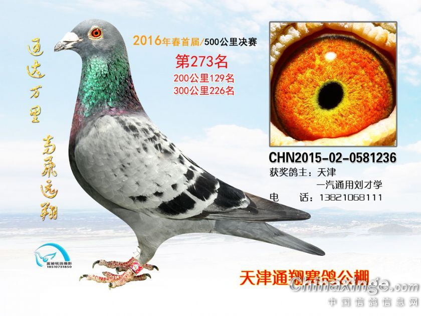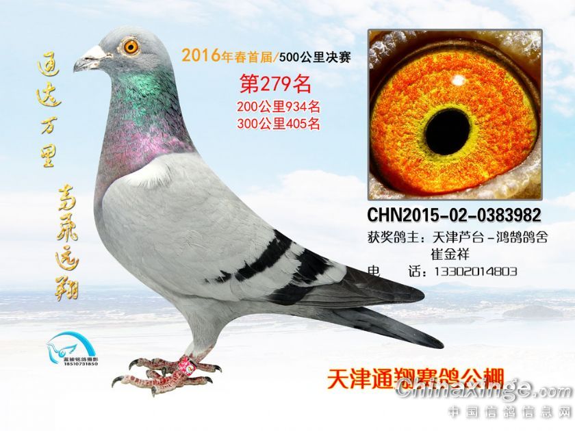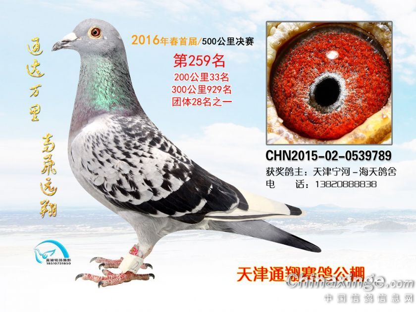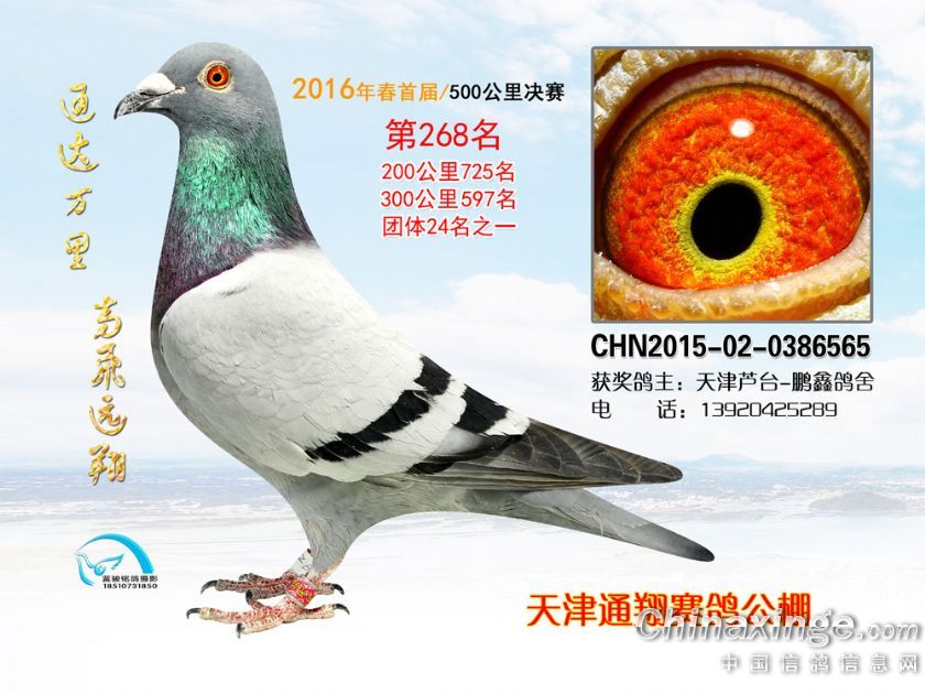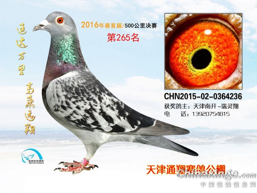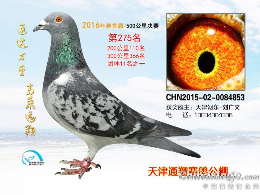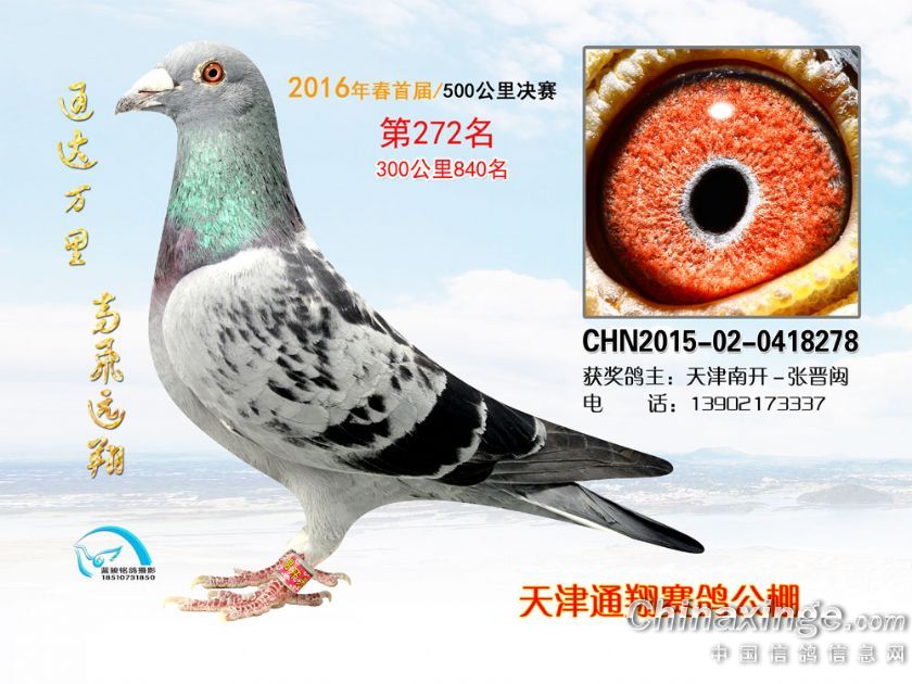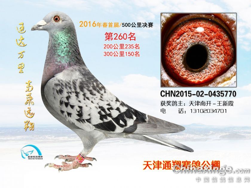 16年春天津通翔公棚首届奖鸽欣赏251-300名