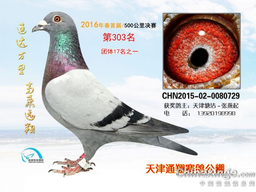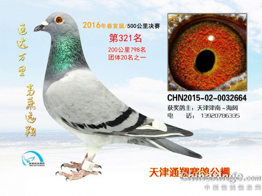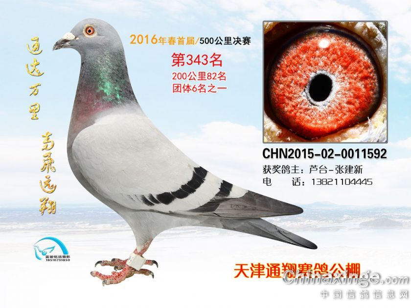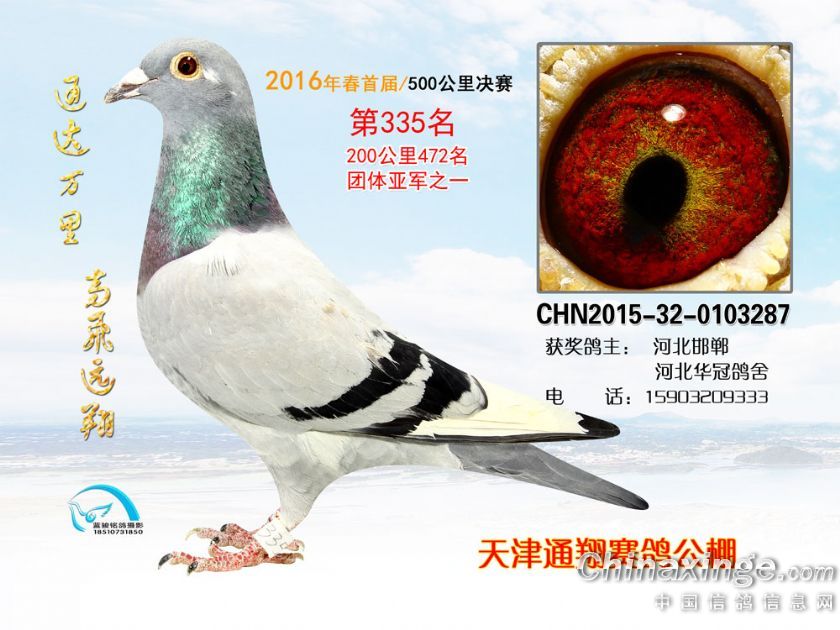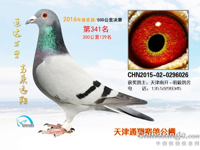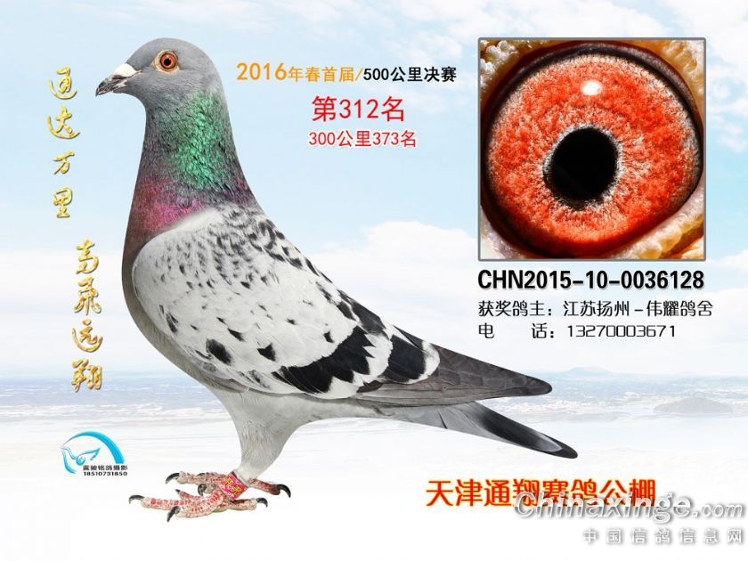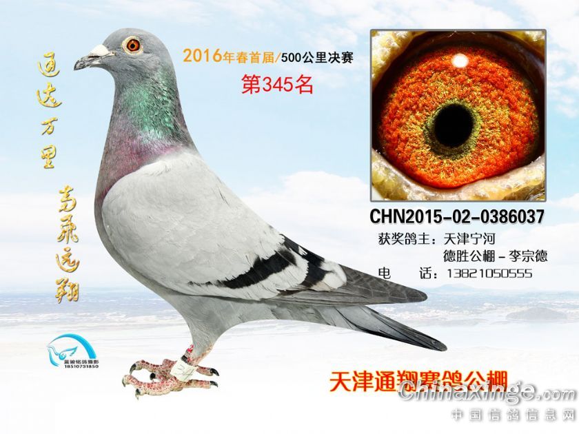 16年春天津通翔公棚首届奖鸽欣赏301-350名