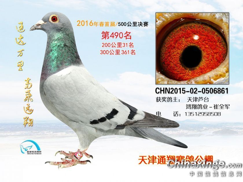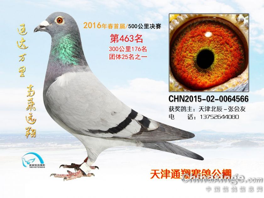 16年春天津通翔公棚首届奖鸽欣赏451-500名