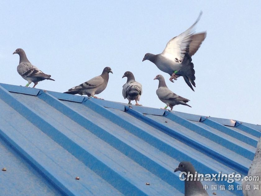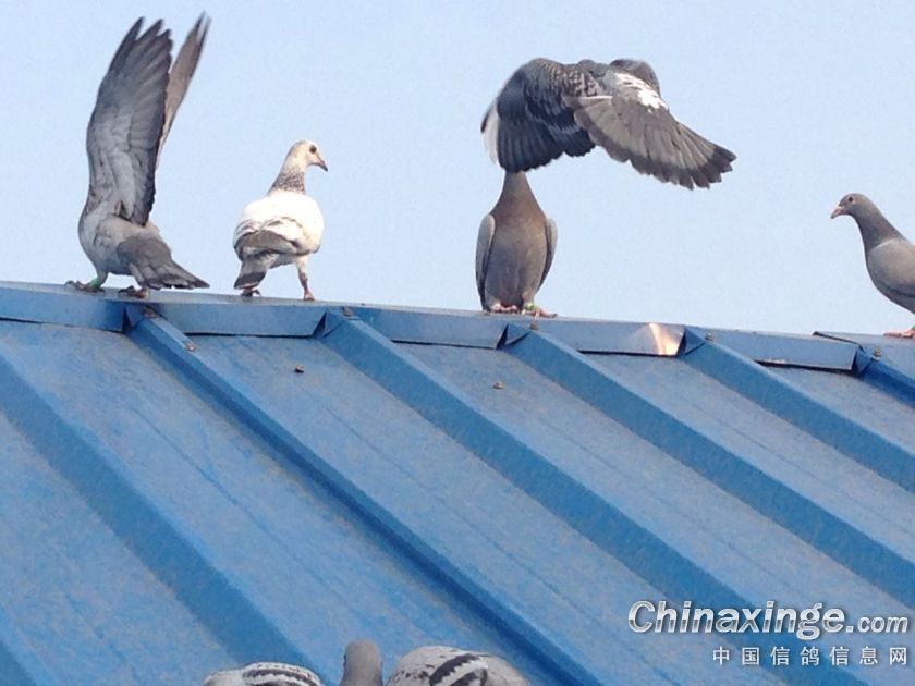 作品说明: 出棚后陆续敢飞上房顶、有的飞上天空一圈回来平稳着落!
