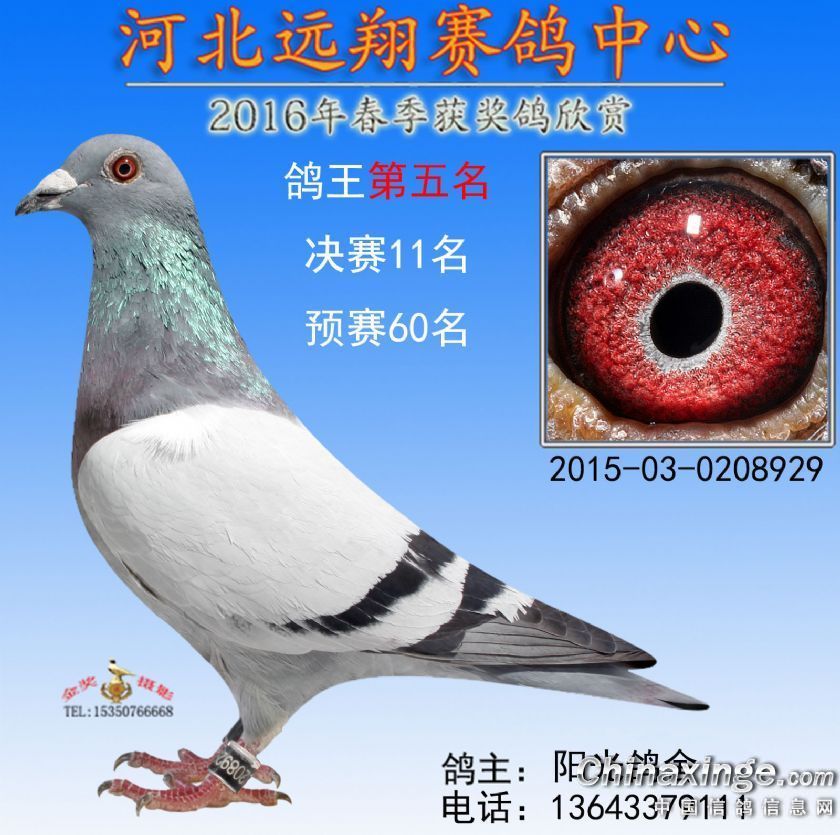 作品说明: 河北远翔赛鸽中心2016春季竞赛获奖鸽