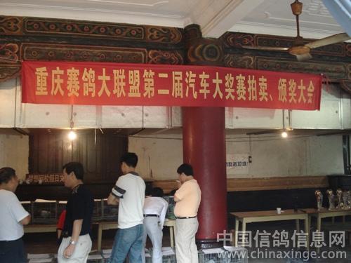 作品说明: 重庆赛鸽大联盟第二届汽车大奖赛颁奖及拍卖于今日上午(10:00)在市体育馆东大厅举行!大联盟首先和到场鸽友回顾本次比赛并颁奖;在阵阵掌声.喝彩声中进入前三十名获奖鸽现场拍卖!以下是图文报道.