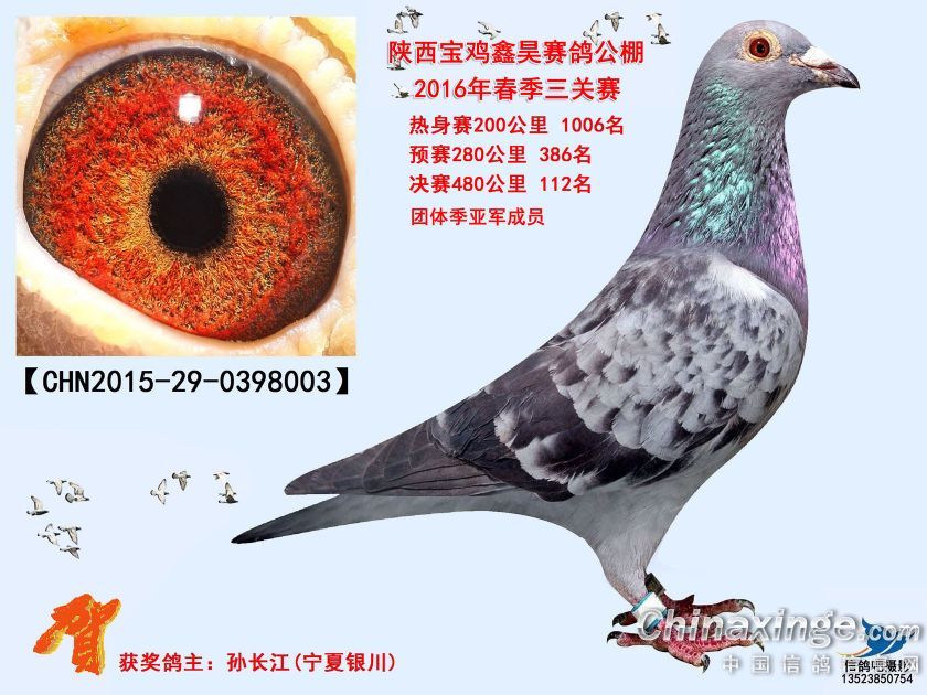 陕西宝鸡鑫昊赛鸽公棚2016年获奖鸽照片