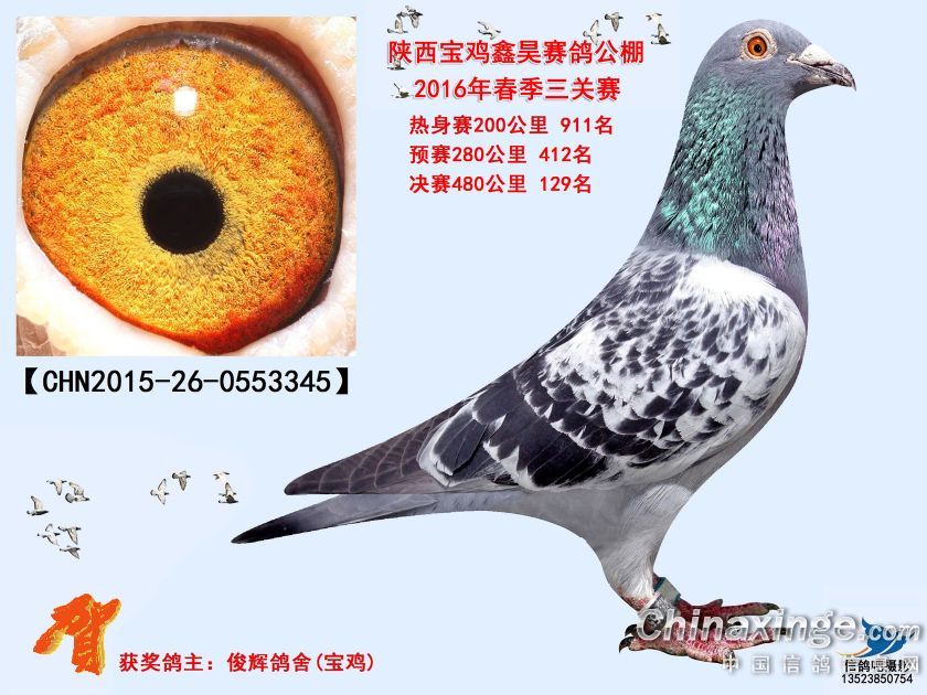 陕西宝鸡鑫昊赛鸽公棚2016年获奖鸽照片