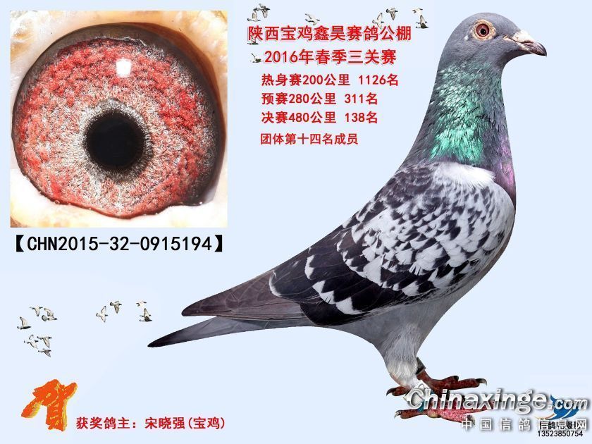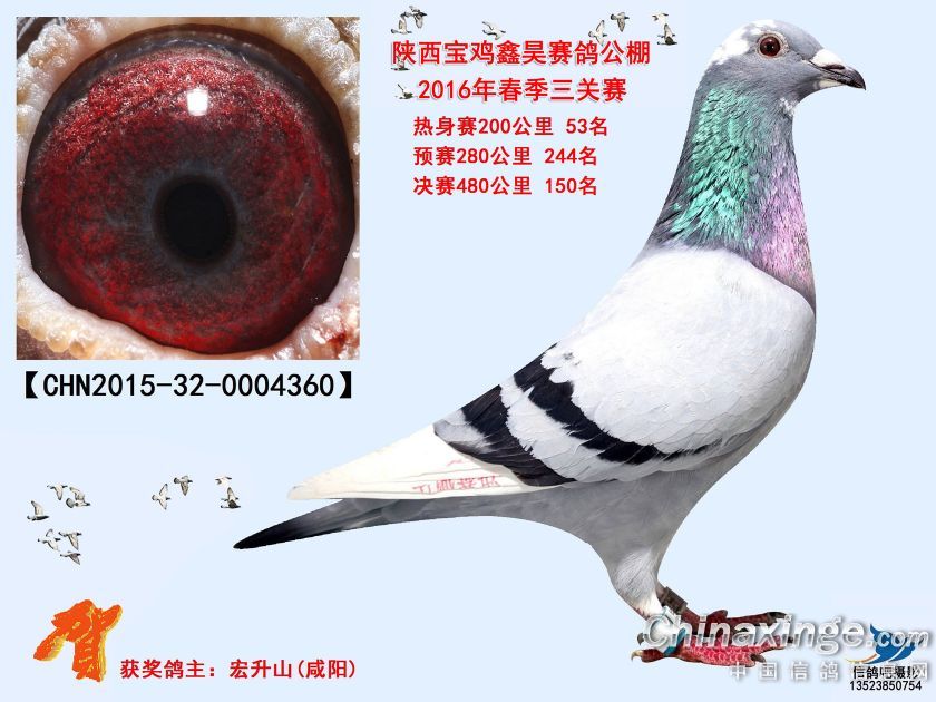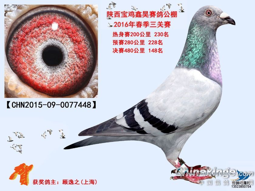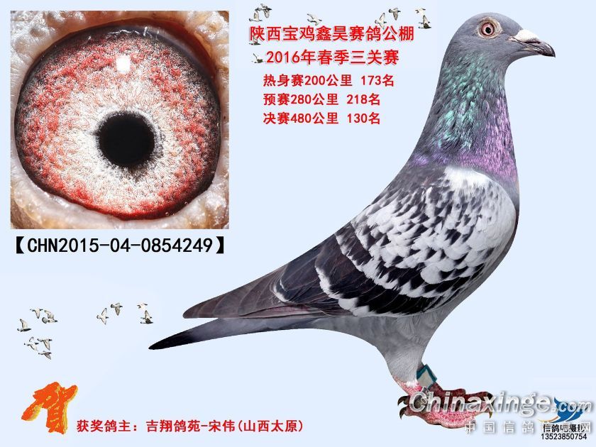作品说明: 陕西宝鸡鑫昊赛鸽公棚2016年获奖鸽照片