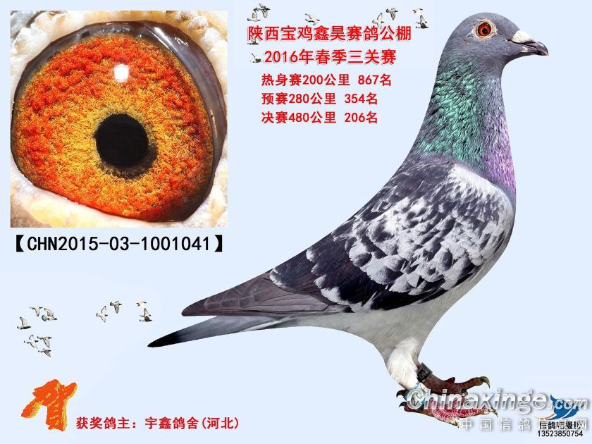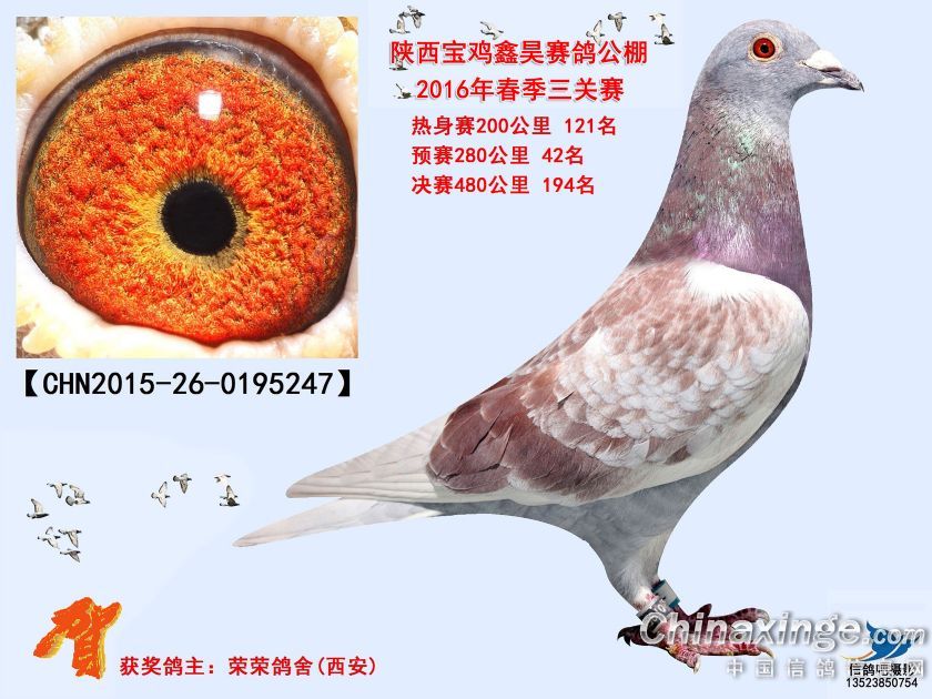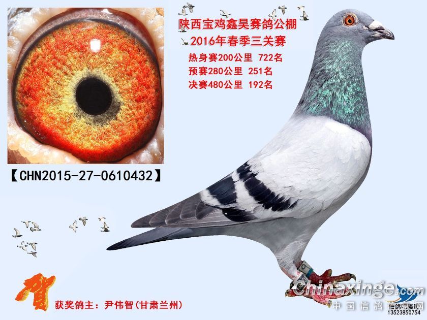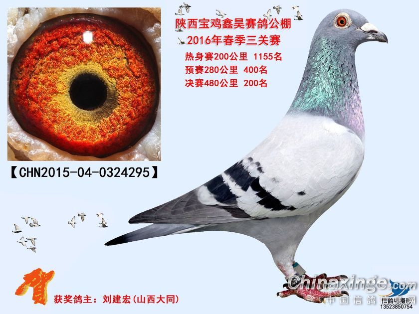 作品说明: 陕西宝鸡鑫昊赛鸽公棚2016年获奖鸽照片