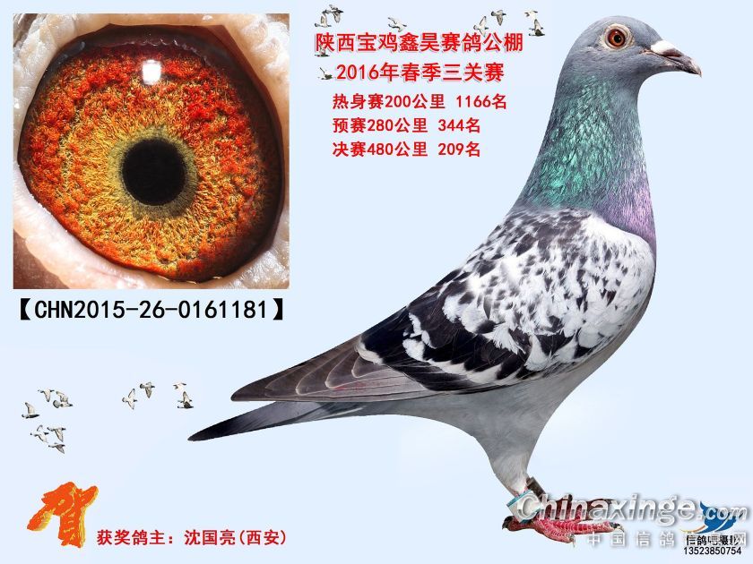 陕西宝鸡鑫昊赛鸽公棚2016年获奖鸽照片