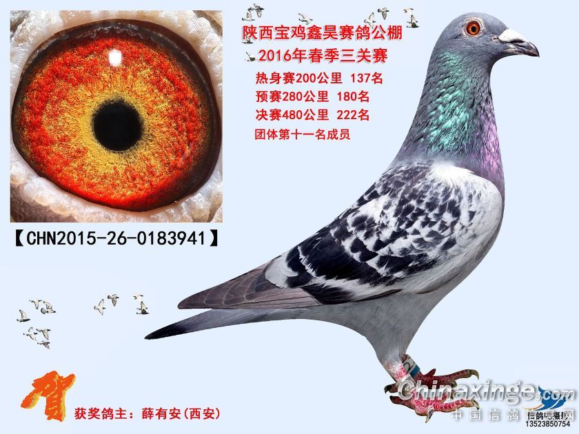 陕西宝鸡鑫昊赛鸽公棚2016年获奖鸽照片
