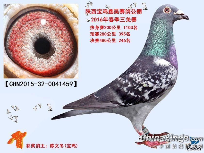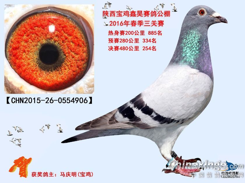 作品说明: 陕西宝鸡鑫昊赛鸽公棚2016年获奖鸽照片