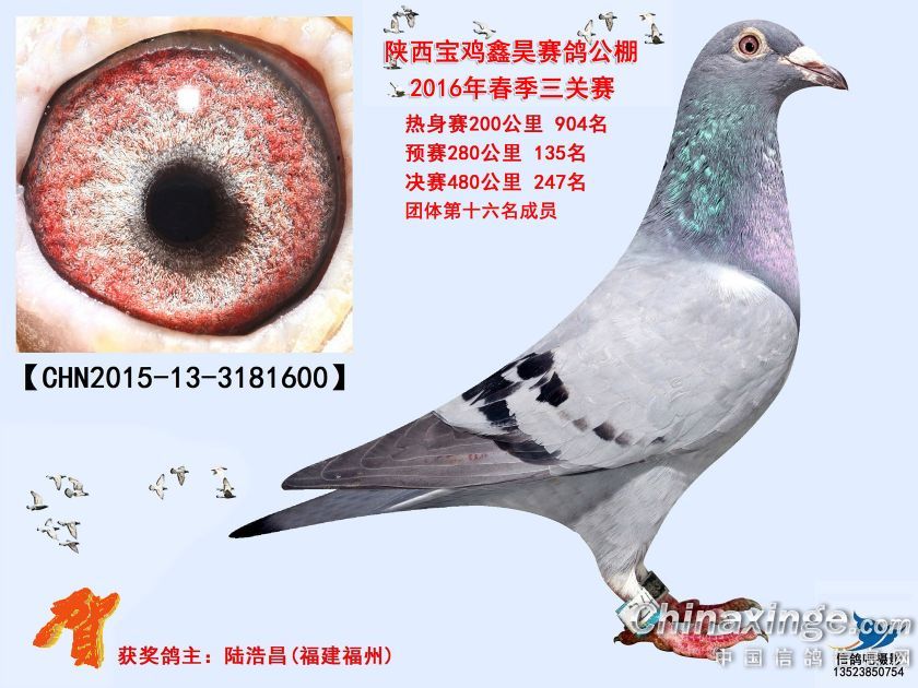 陕西宝鸡鑫昊赛鸽公棚2016年获奖鸽照片
