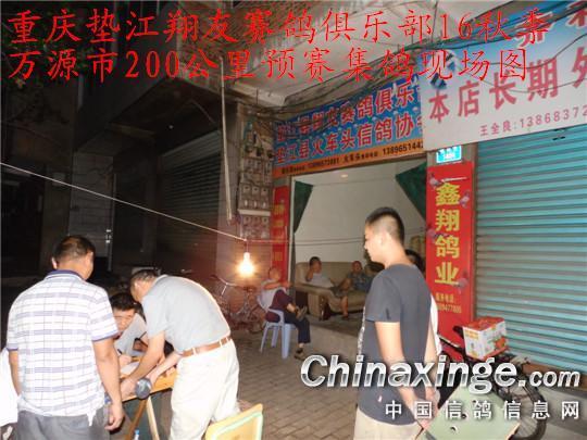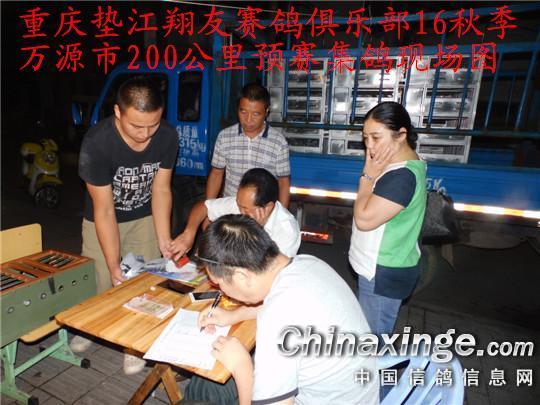 2016年9月15日夜间8点~10点,天空月儿圆圆,天宫二号上天,全国人民以各种方式赏月度中秋。重庆市垫江县翔友赛鸽俱乐部:赏月集鸽赛万源了。今天秋季经过几次训放和资格站的淘汰,预赛鸽已经“寥寥无几”了,但是集鸽还是排队进行,多数鸽友吃了晚饭匆匆忙忙提着决赛鸽来到集鸽现场——垫江县翔友赛鸽俱乐部,(垫江县桂溪镇陵园路140号),同时邻县长寿区石桥坝、海棠镇的鸽友,也来参加了集鸽决赛。集鸽现场气氛热情,今夜月明人尽望,不知秋思落谁家,明日花落谁家。排队上笼,集鸽程序有条不紊。通过验收号码登记,盖暗章,应该做到了公平、公正、公开。集鸽从晚上8时开始,到10时结束,赛鸽车10时30分才从重庆垫江县出发……。