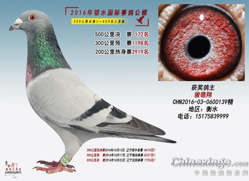 作品说明: 银水国际赛鸽公棚2016年获奖鸽151-200