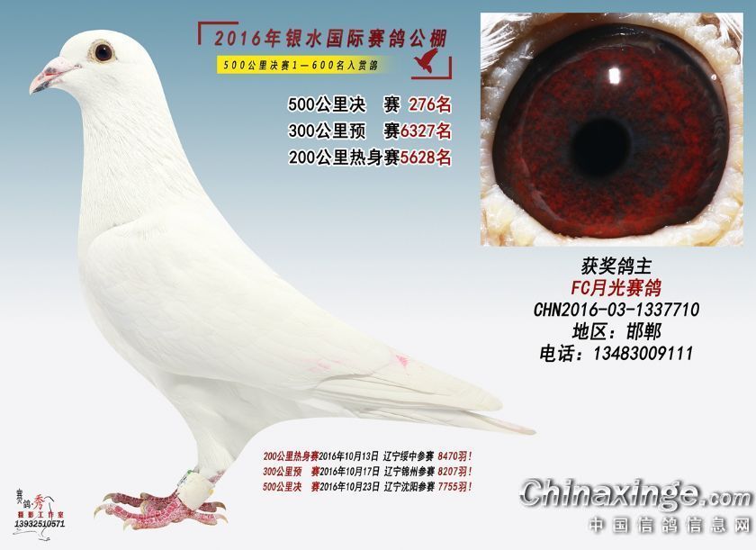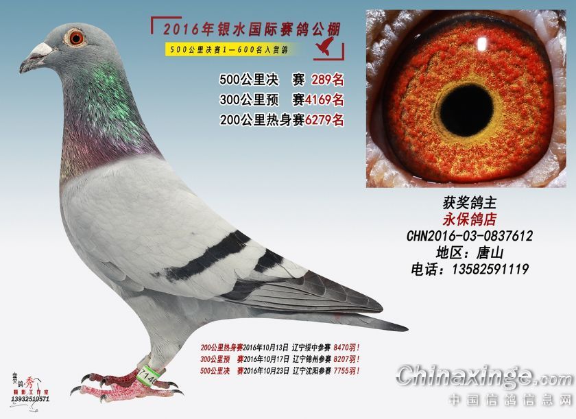 作品说明: 银水国际赛鸽公棚2016年获奖鸽201-250