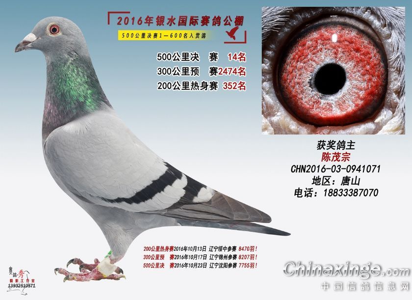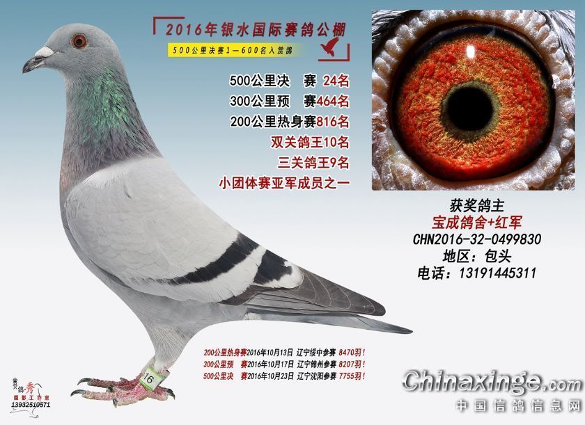 作品说明: 银水国际赛鸽公棚2016年获奖鸽201-250