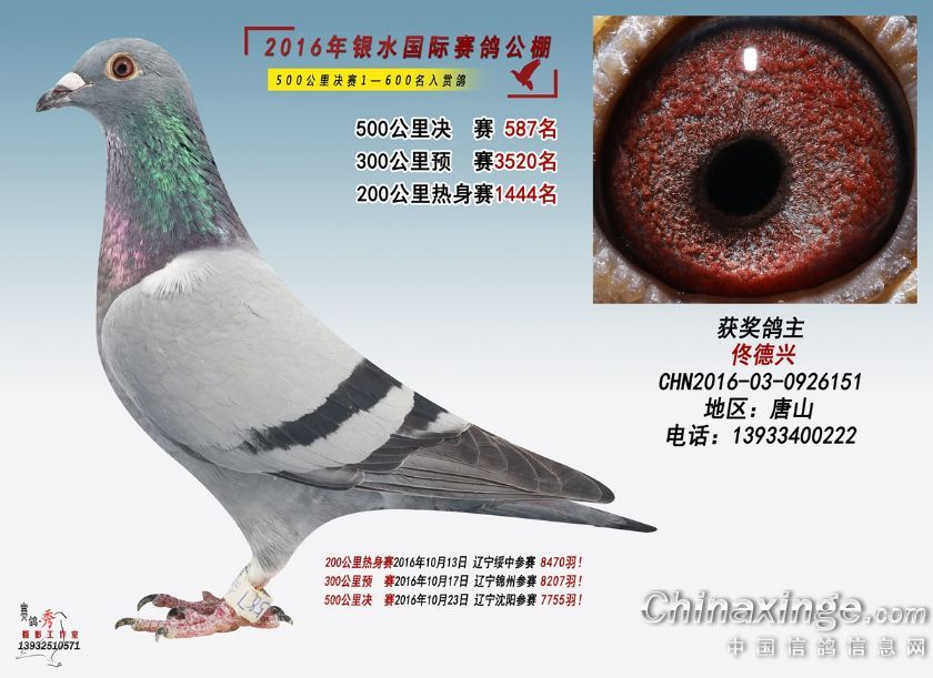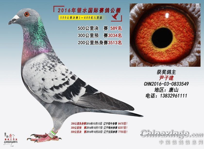 作品说明: 银水国际赛鸽公棚2016年获奖鸽551-600