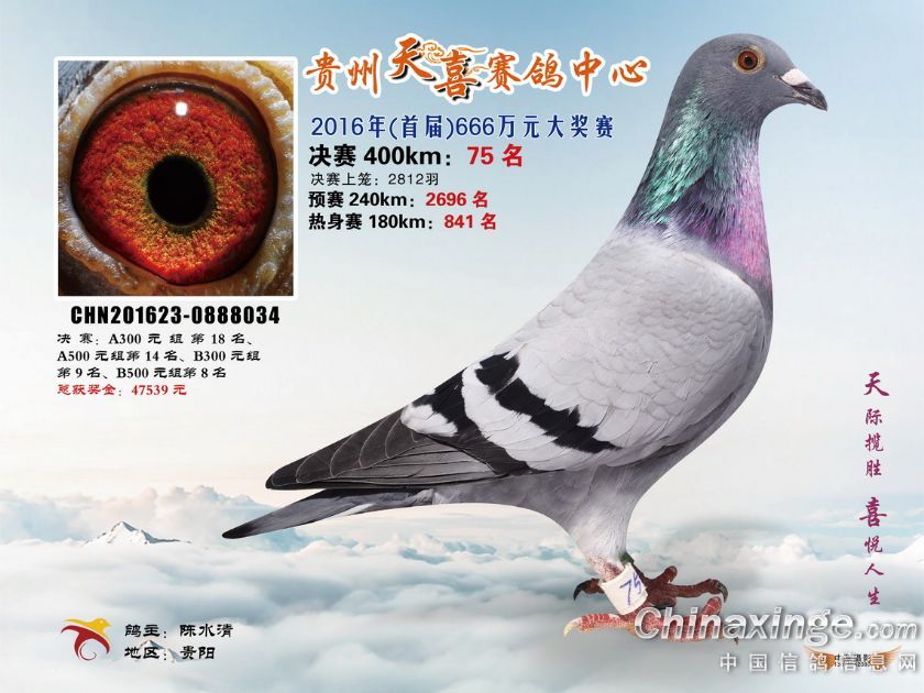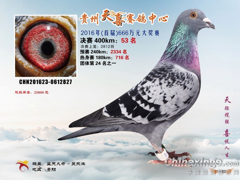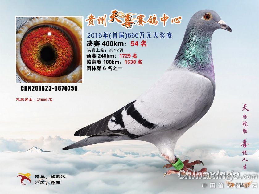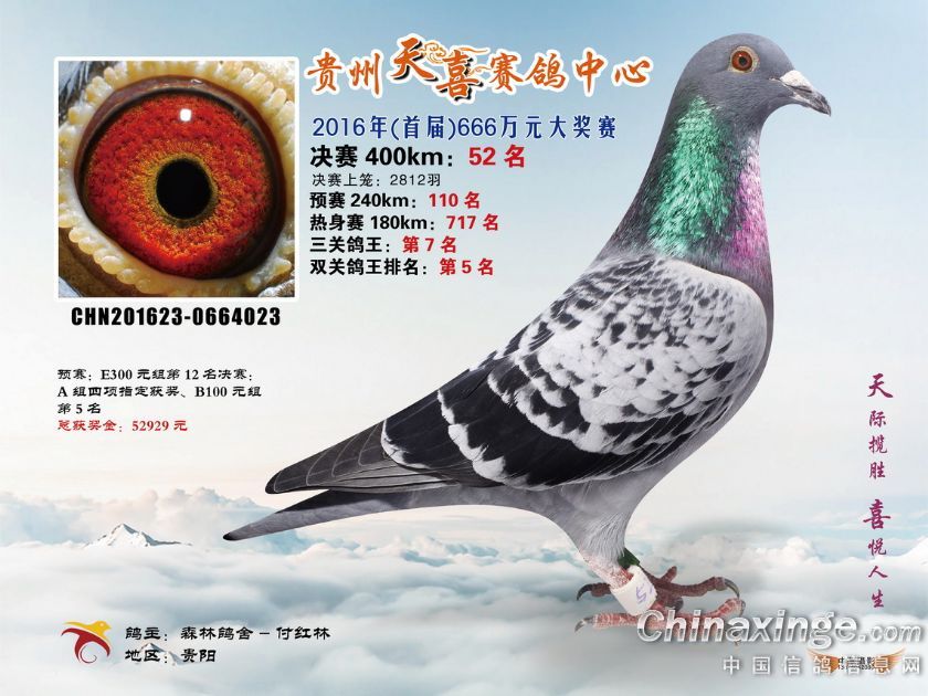 作品说明: 天喜赛鸽中心决赛获奖鸽51-100名铭鸽欣赏