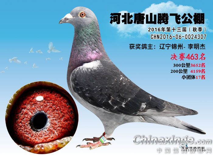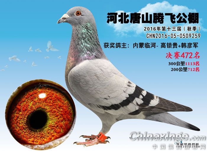 作品说明: 16年508公里决赛获奖鸽451-500名