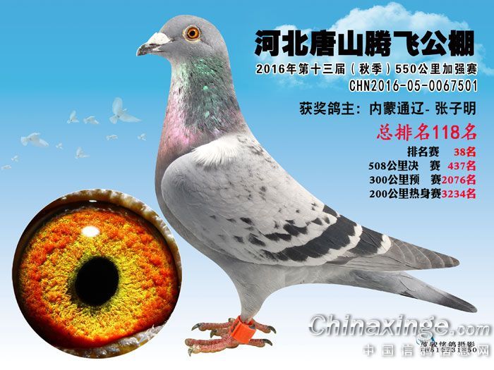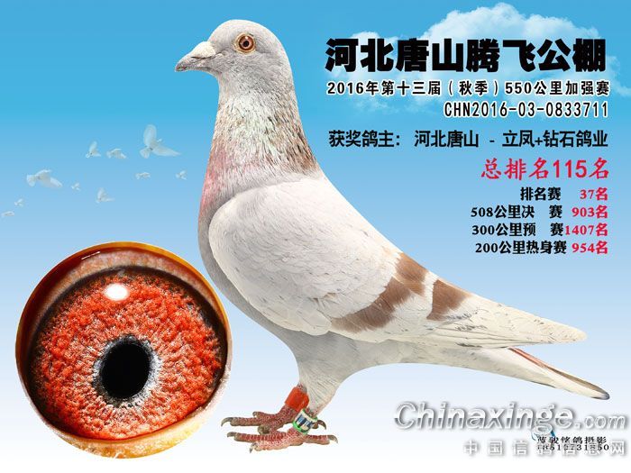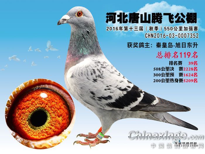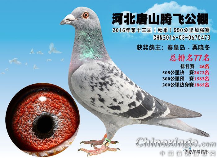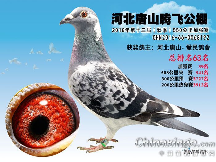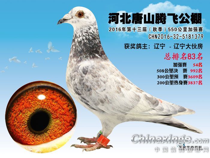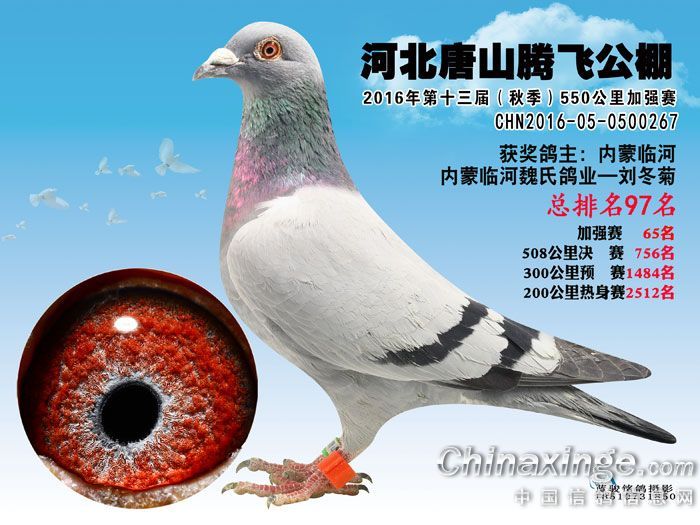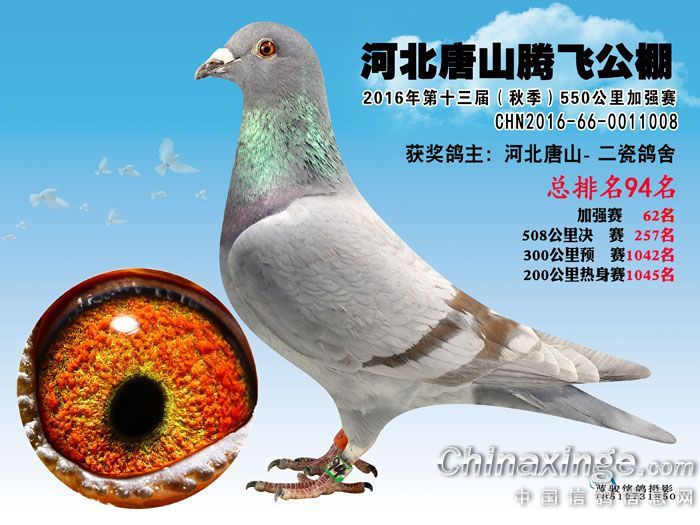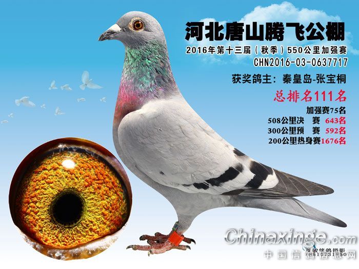 作品说明: 河北唐山腾飞公棚2016年550公里加强赛61名至120名获奖鸽预览