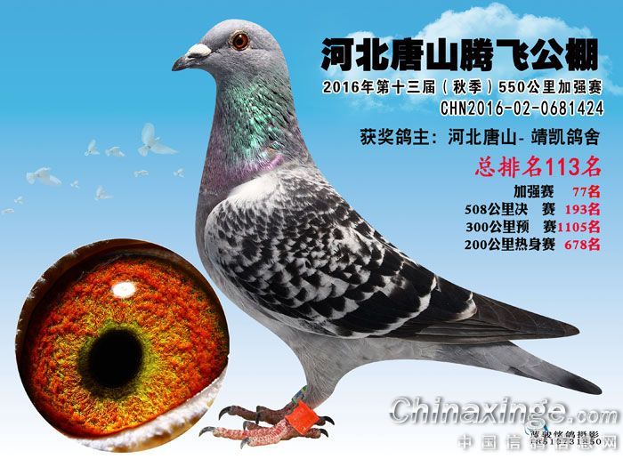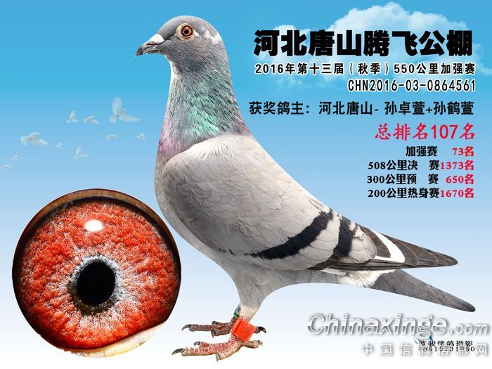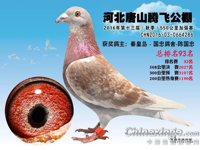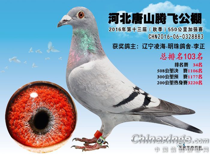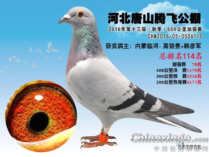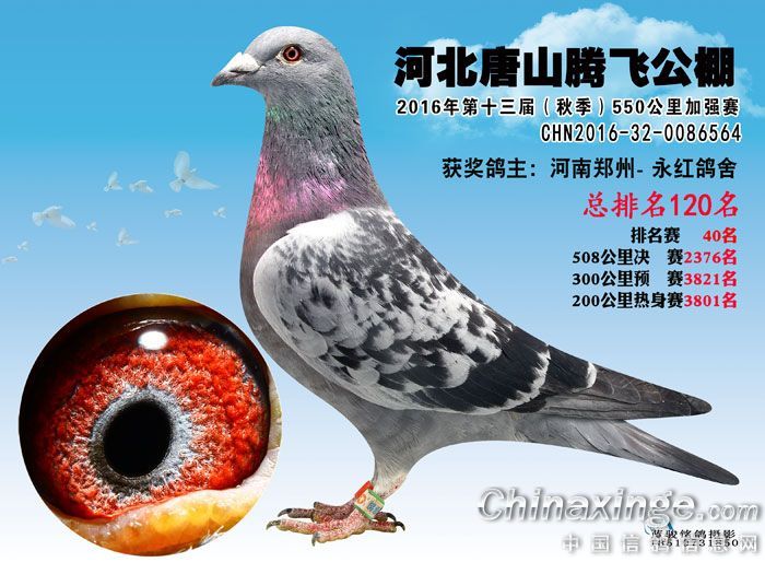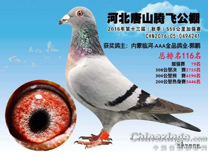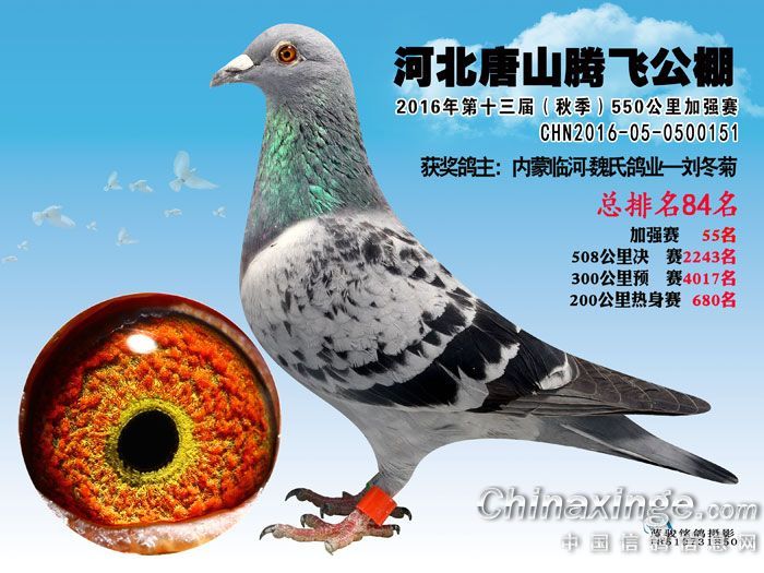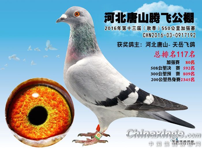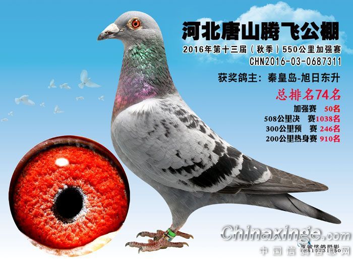 作品说明: 河北唐山腾飞公棚2016年550公里加强赛61名至120名获奖鸽预览