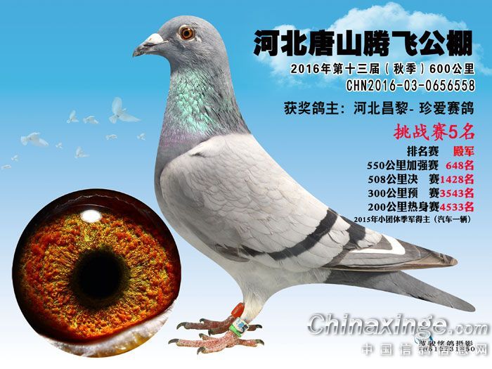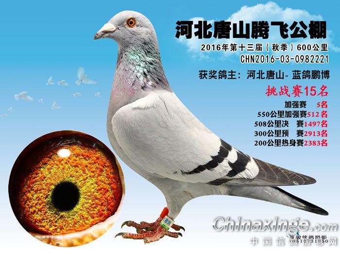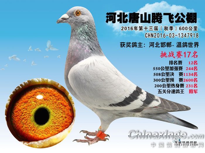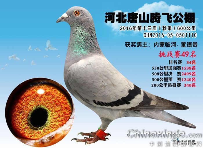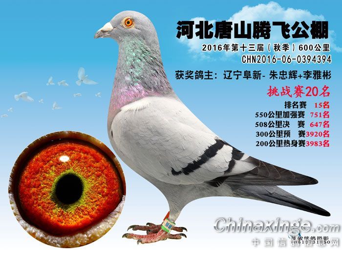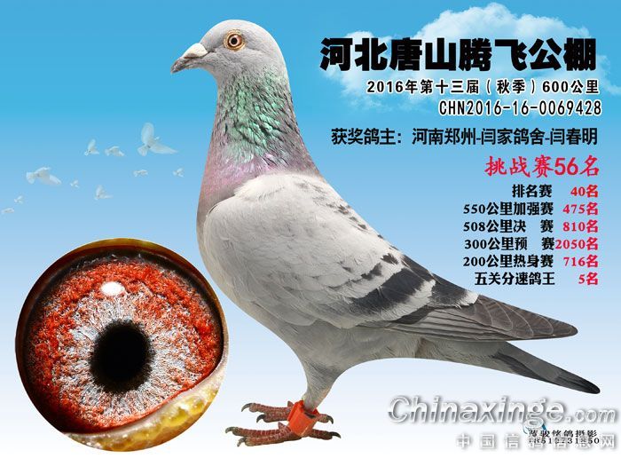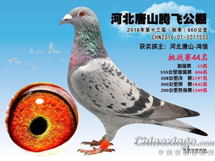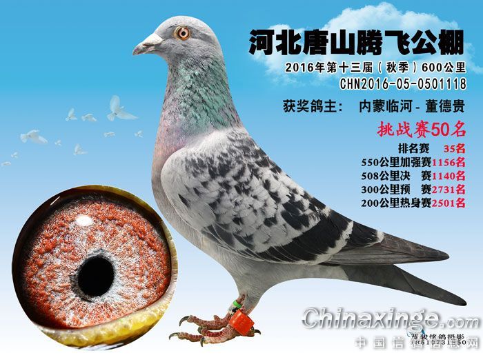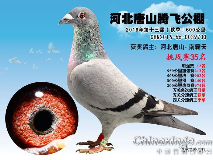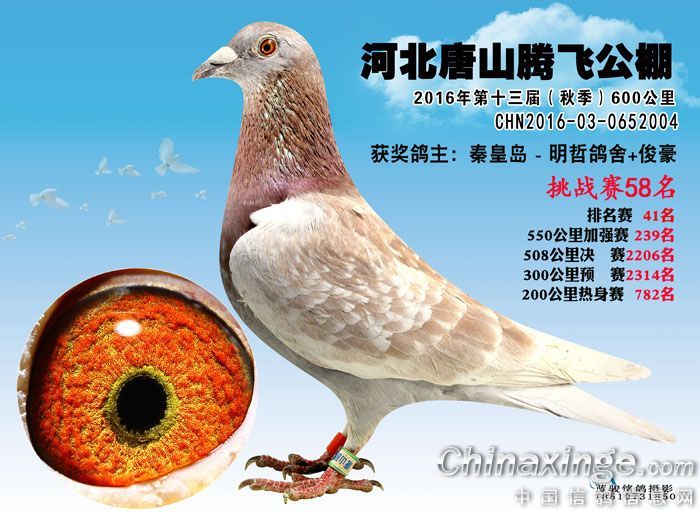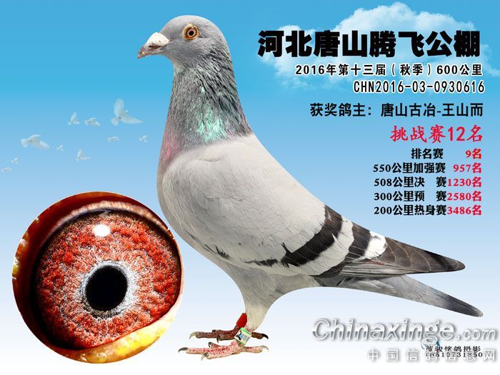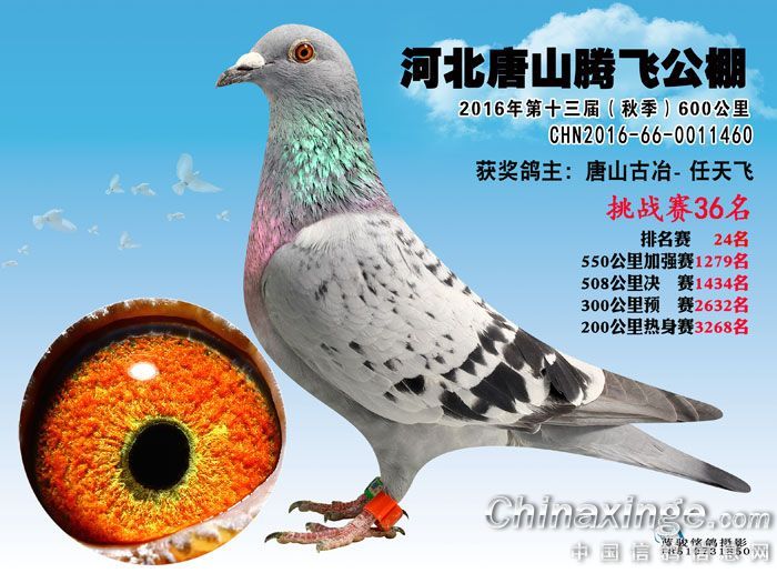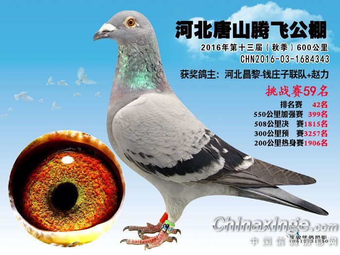 河北唐山腾飞公棚2016年600公里挑战赛冠军鸽至60名获奖鸽预览