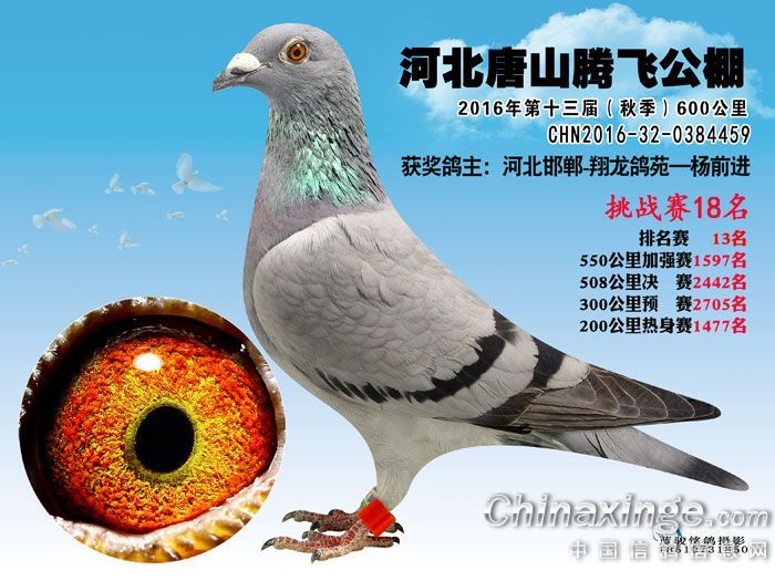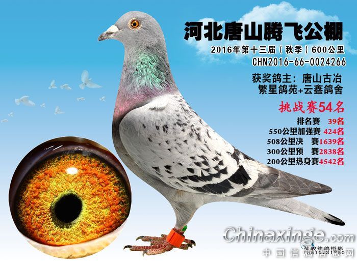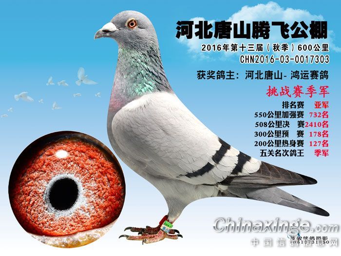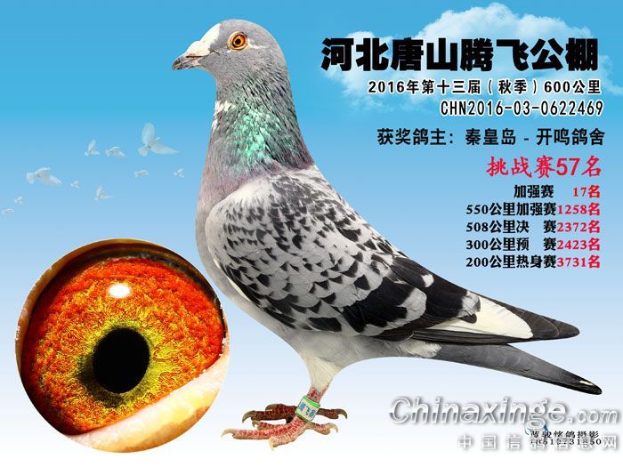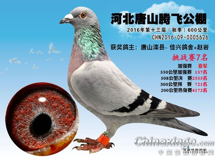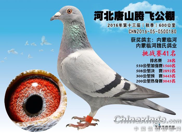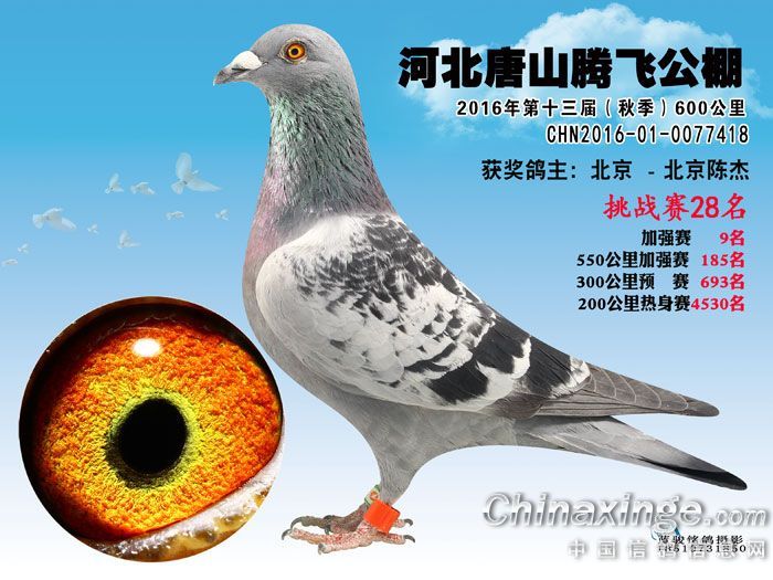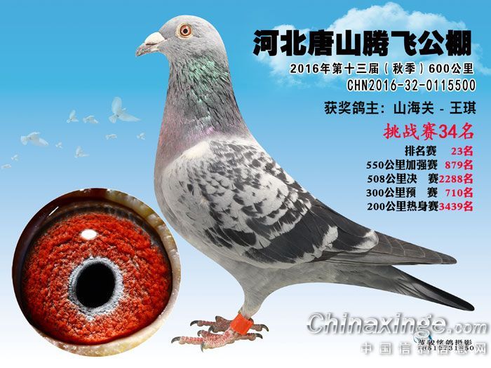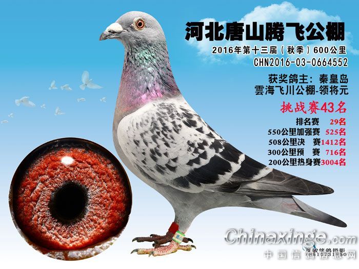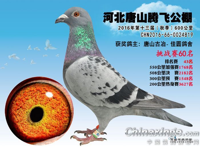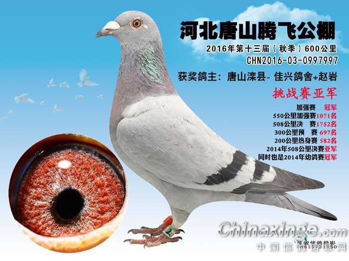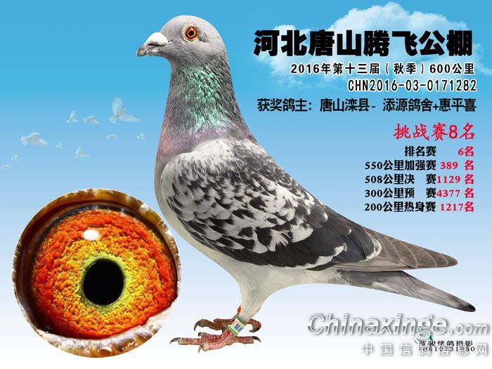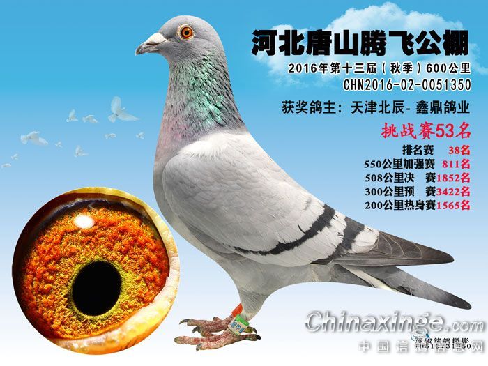 河北唐山腾飞公棚2016年600公里挑战赛冠军鸽至60名获奖鸽预览