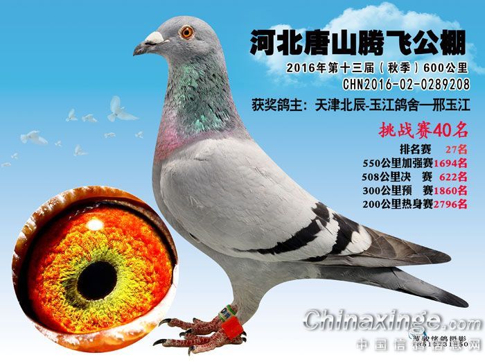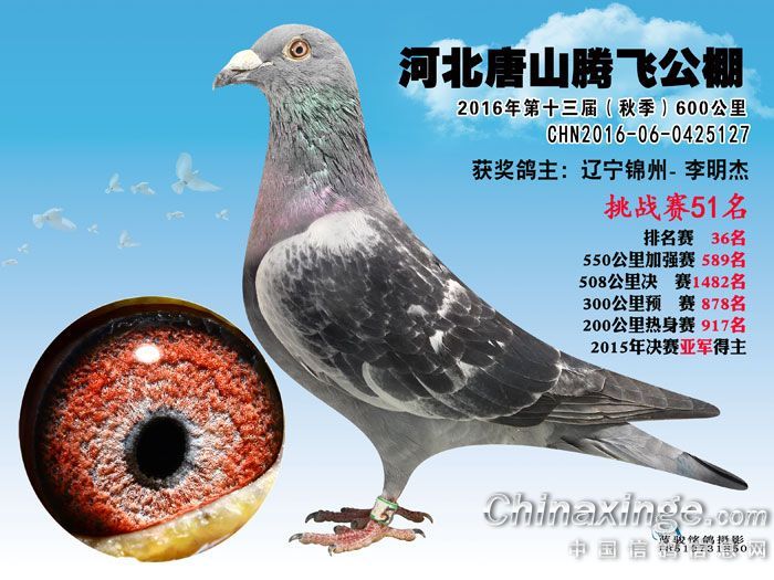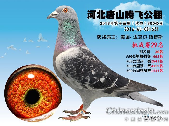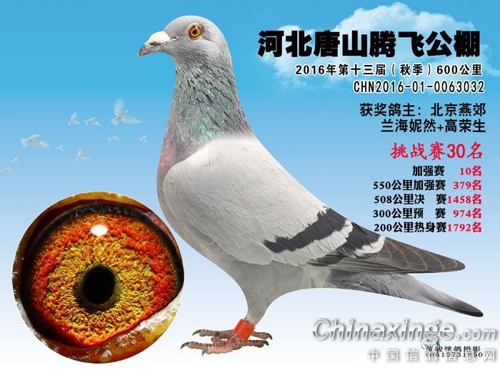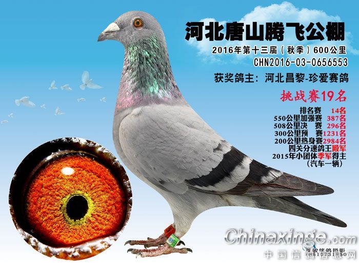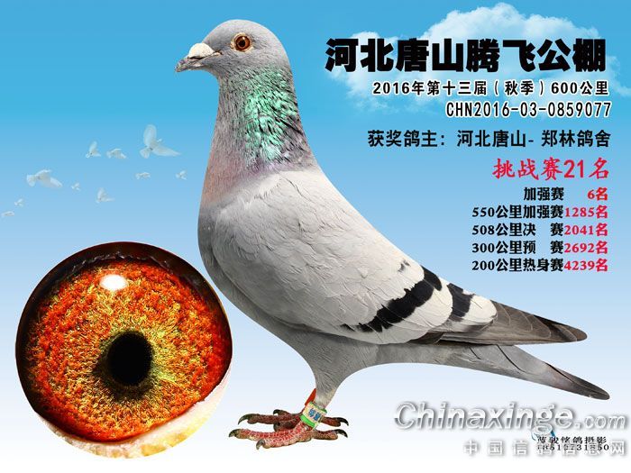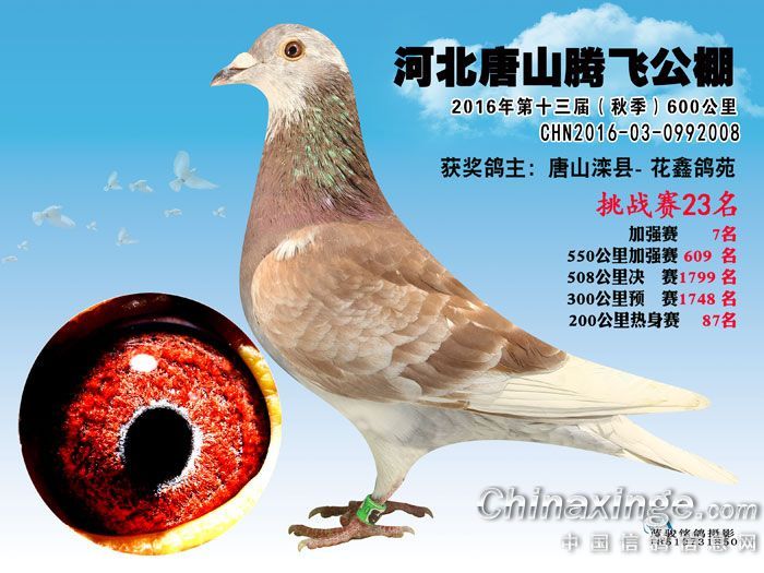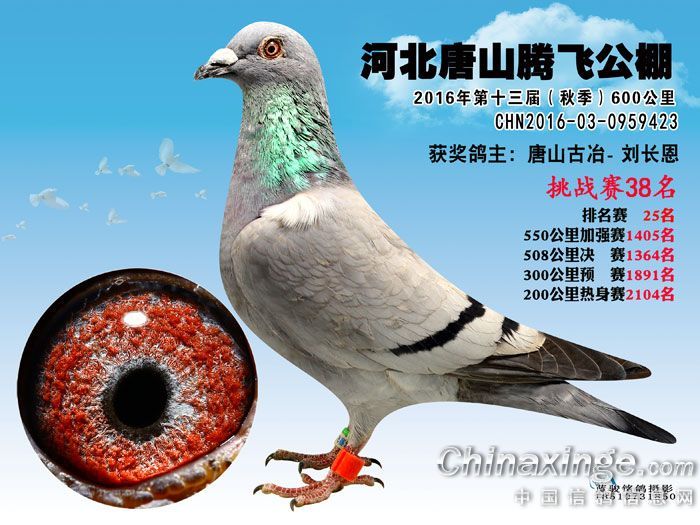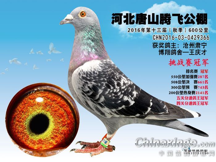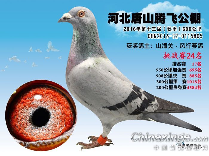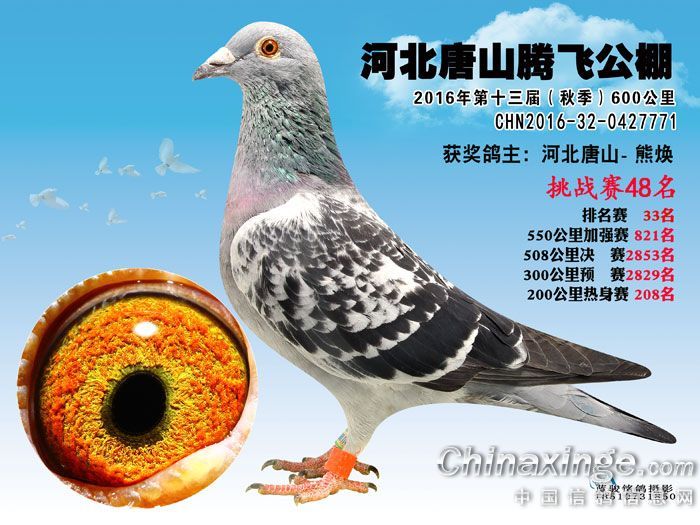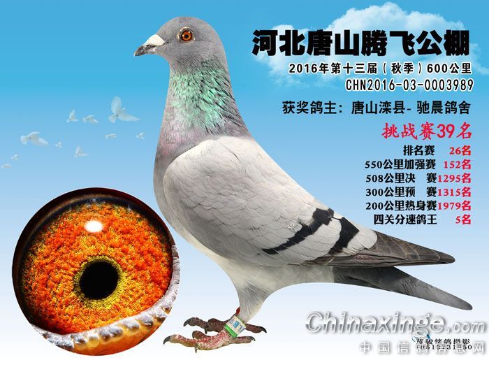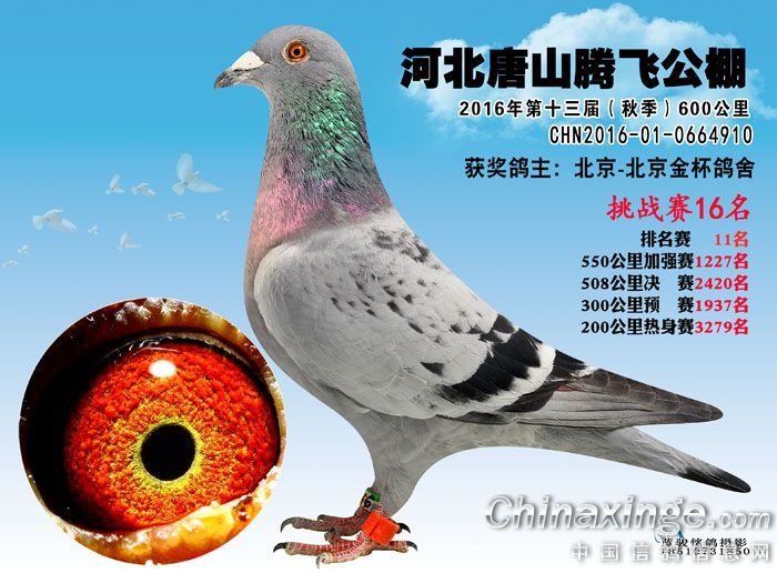 河北唐山腾飞公棚2016年600公里挑战赛冠军鸽至60名获奖鸽预览
