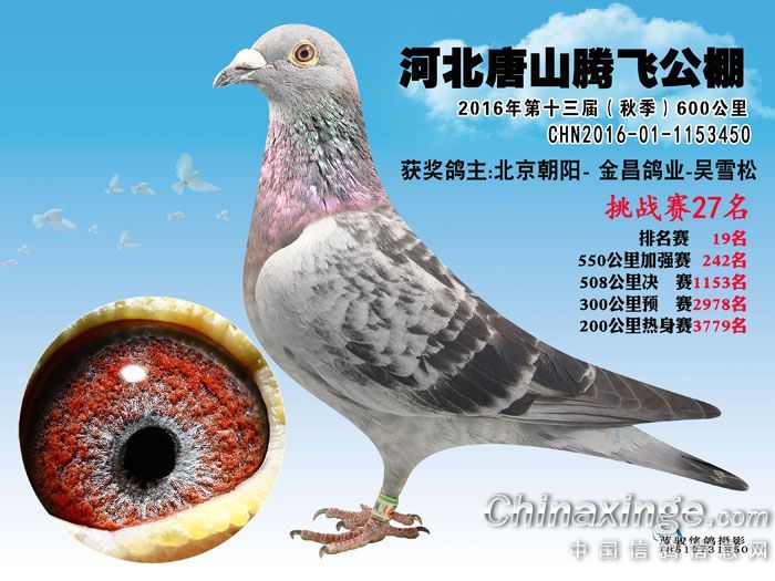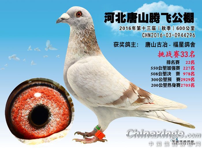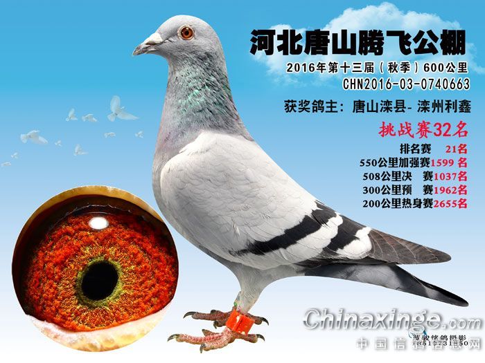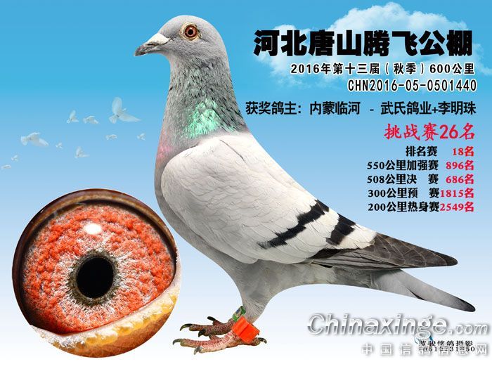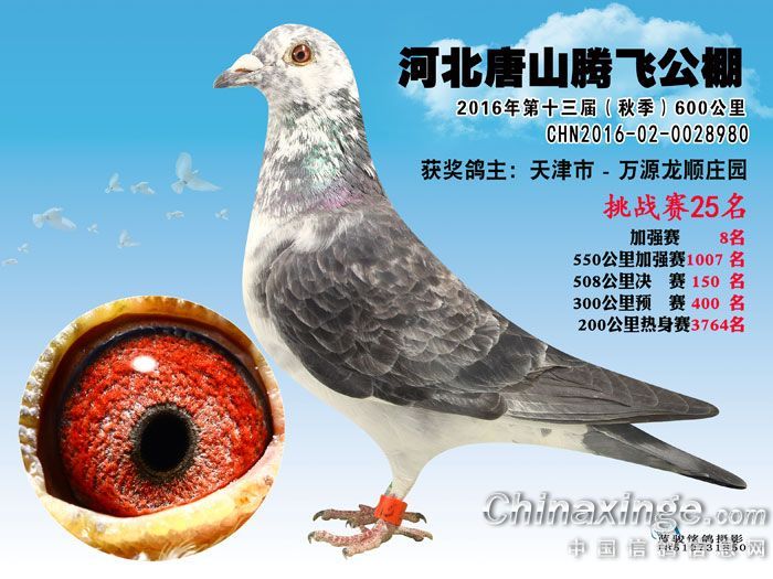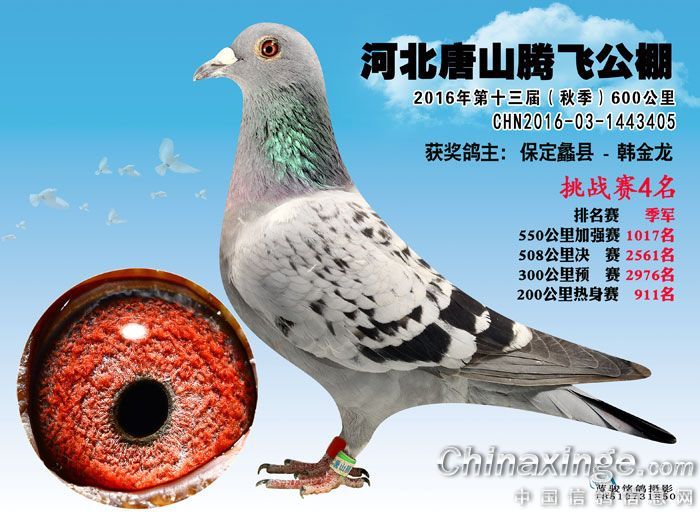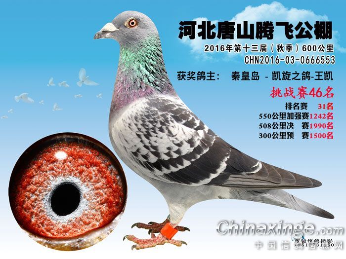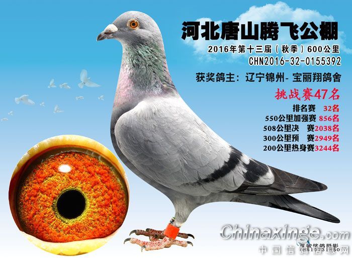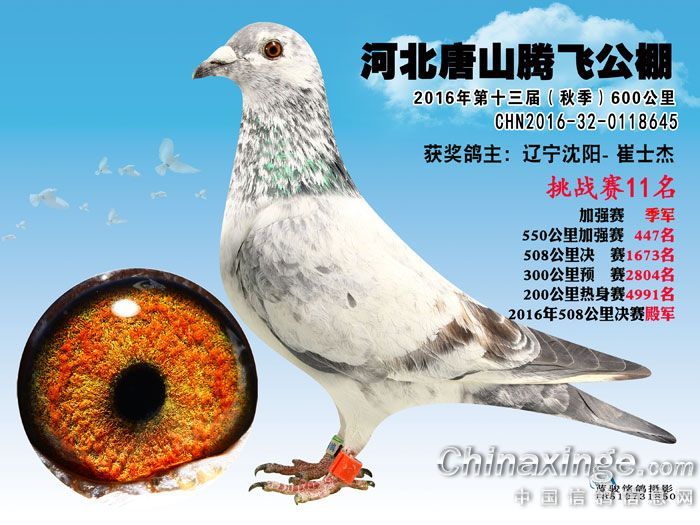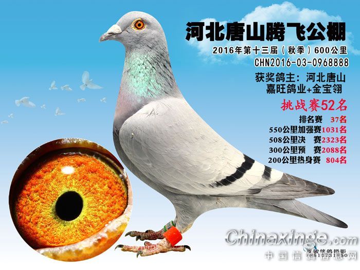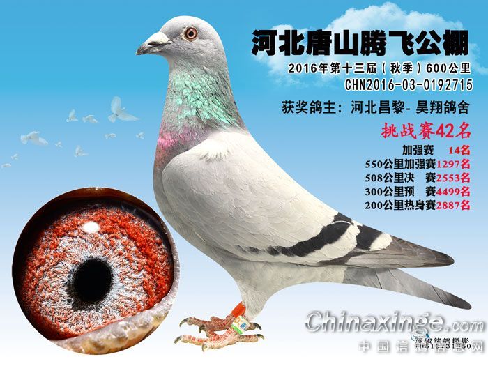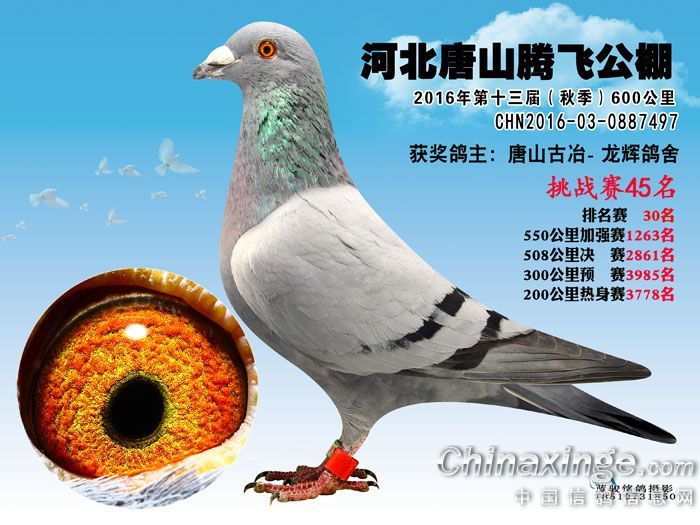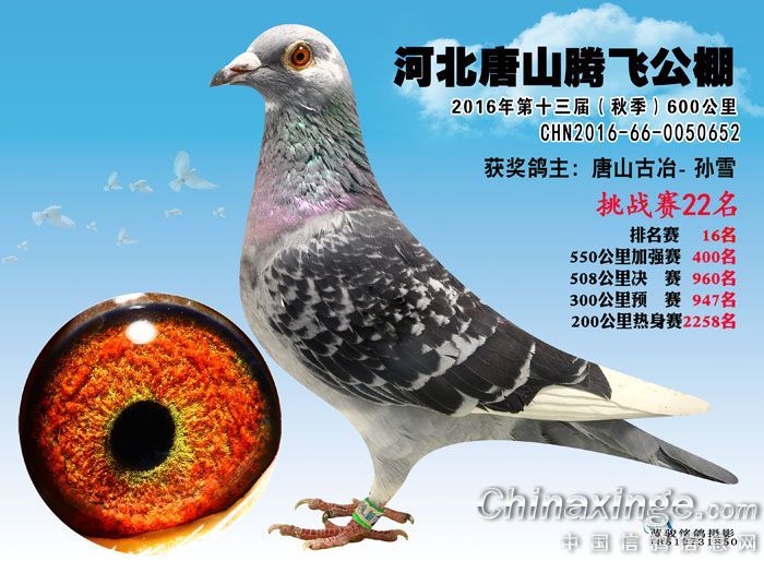 河北唐山腾飞公棚2016年600公里挑战赛冠军鸽至60名获奖鸽预览