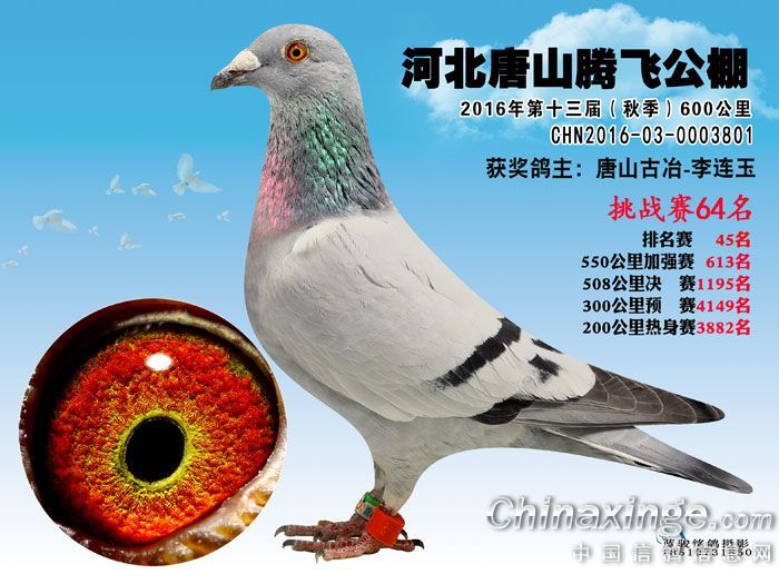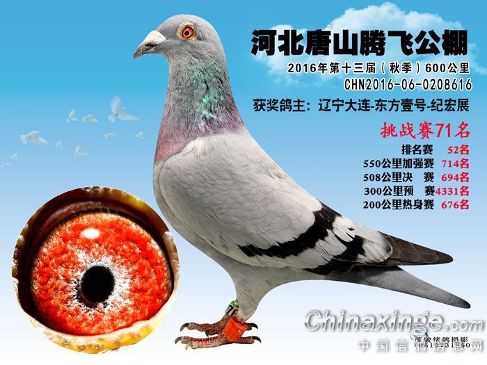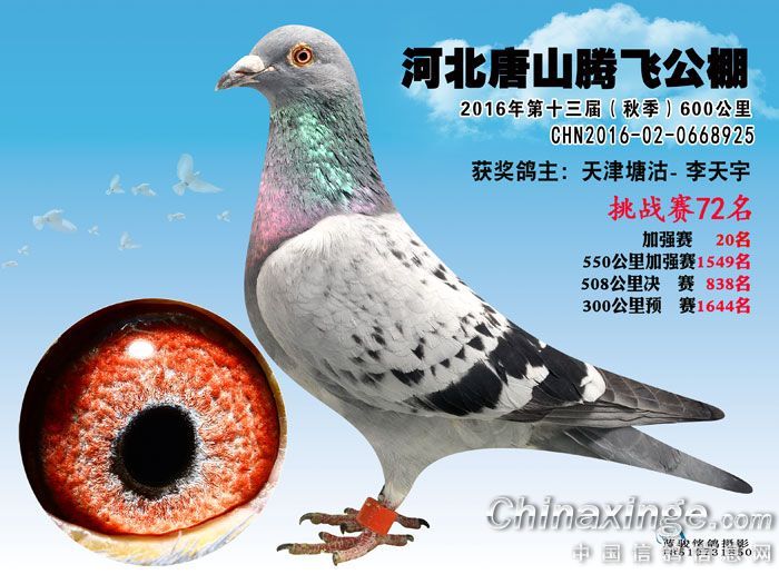作品说明: 河北唐山腾飞公棚2016年600公里挑战赛61名至79名获奖鸽预览