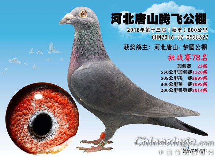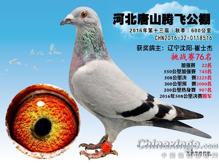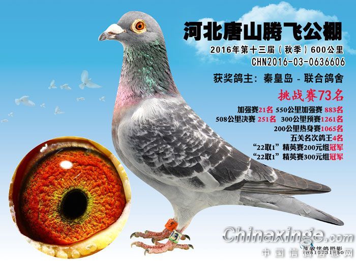 河北唐山腾飞公棚2016年600公里挑战赛61名至79名获奖鸽预览