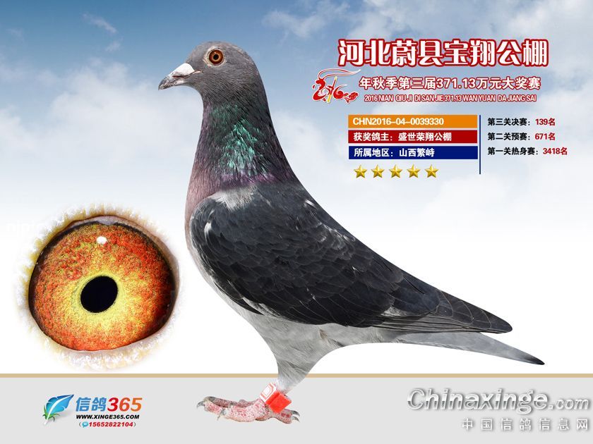 河北宝翔赛鸽公棚2016年获奖鸽121-150名